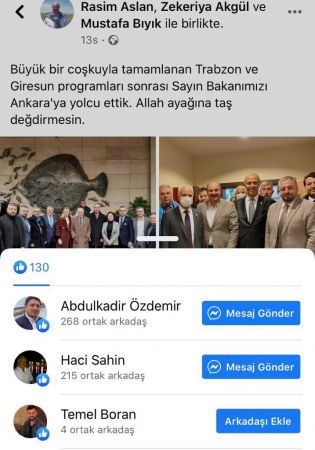 ALİ KOÇ’UN CUMHURBAŞKANI ZİYARETİ TRABZON’DA NASIL YANKI BULDU?Cumhurbaşkanı Recep Tayyip Erdoğan, Fenerbahçe Spor Kulübü Başkanı Ali Koç’u Cumhurbaşkanlığı Külliyesinde kabul etti. Ardından Trabzonspor taraftarı ziyaretle ilgili çeşitli yorumlarda bulundu. Süper Lig’de açık ara lider Trabzonspor’u ‘devlet koruyor’ iddialarını ortaya atanlara bir taraftar “Bunu haber yapmanıza gerek yoktu zaten çünkü nerdeyse düzenli olarak her ay orda görünüyor. Ama size sorsanız devlet Trabzonspor’u destekliyor.Madem haber yaptınız asıl önemli olan neden yine buluştukları değil mi? Külliye’de bir oda tutsanız gidip gelmek zahmeti olmasa” diye yorumda bulunurken Ortahisar Belediyesi CHP’li Meclis Üyesi Cüneyt Zorlu ise “Bu görüşme birçok mana taşıyor olabilir. Umarım geçmişte yaşanan hakem hataları tekrarlanmaz. Geçmişte Fener ve Basakşehir'in Sn. Cumhurbaşkanını ziyaretleri bizim için pek hayırlı olmadı. Federasyon buradan mesaj almaz inşallah.” şeklinde ifadelere yer verdi.YOLLARI AÇMAYAN BÜYÜKŞEHİR Mİ hatalı? KAR LASTİĞİ TAKMAYAN DOLMUŞLAR MI?Trabzon’a 5cm kar yağdı. Ancak karşımızda öylesine beceriksiz bir belediye yönetimi vardı ki 5cm’lik kara bile teslim oldu. Sosyal medya eleştiriden geçilmiyor. Sokakta insanlar tepkilerini dile getiriyor. Duraklarda yüzlerce insan ulaşım sorunu nedeniyle evine saatlerce geç gitti. Gerçek böyle iken Büyükşehirden beslenen medya işi ters yüz göstermeye çalıştı. Yolları açmayan, tuzlamayan ve hiç ortalıkta görünmeyen Büyükşehiri değil kar lastiği takmayan dolmuşları hedef yaptılar. El hak doğrudur. Kar lastiği takmayan dolmuşlar kesinlikle eleştirilmelidir.Ancak 5 cm karı bile temizleyemeyen tuzlayamayan Büyükşehiri aklayarak değil. Büyükşehir yolları tuzlasaydı kar lastiği olmasa da o dolmuşlar çalışacaktı. Yani millet perişan olmayacaktı. Büyükşehirden beslenip milleti ahmak yerine koymak çok acayip bir tablo. Allah kimseyi bu hale düşürmesin.BAŞKAN ZORLUOĞLU’NUN TEVAZU PAYLAŞIMI VE “%65’iz” sözleriCumhurbaşkanı ve AK Parti Genel Başkanı Recep Tayyip Erdoğan, Kızılcahamam'da Belediye Başkanları İstişare ve Değerlendirme Toplantısı’nda bir araya geldi. Toplantıya Trabzon’daki AK Partili belediyelerin başkanları da katılım gösterdi. Gün içinde toplantıya dair fotoğraflar ve mesajlar paylaşıldı. Paylaşılan mesajlar içinde bizim en çok dikkatimizi çeken ise Trabzon Büyükşehir Belediye Başkanı Murat Zorluoğlu’nun yaptığı Cumhurbaşkanı Erdoğan’ın sarf ettiği “Biz tevazu ehli olmaya mecburuz...” sözleri oldu.Başkan Zorluoğlu, Cumhurbaşkanı Erdoğan’ın tevazu vurgusunu sosyal medya hesabından paylaşırken, icraatları paylaşımları ile örtüşmüyor. Büyükşehir Belediyesi tarafından “Belediye İcraatlarını Tanıtıcı Videolar ve Dijital Reklam” işi için 21 Kasım’da pazarlık usulüyle yapılan ihalede belediye şirketi olan Trabzon Kent Spor Turizm ve Bilişim Organizasyon Hizmetleri Anonim Şirketi ile 399 bin 190 TL’ye sözleşme imzalandı. Yine pazarlık usulüyle ve yine aynı firmayla ‘Belediye Faaliyetlerinin Yer Aldığı Doküman Hazırlanması ve Basımı’ işi için de 397 bin 500 TL’ye sözleşme imzalandı.Belediye Başkanı Murat Zorluoğlu’nun icraatlarını tanıtmak için sadece iki ihalede belediyenin kasasından 796 bin 690 TL çıkarken, Başkan Zorluoğlu sosyal medyadan yaptığı paylaşımla her zaman ki gibi algıya oynadı.Hele hele siyasi partilerin termihal eleştirisine ‘Biz %65’iz”sözü hiç tevazu ifade etmiyor.MUMCU, ESNAF ZİYARETİNE ÇIKTIAK Parti Trabzon İl Başkanı Sezgin Mumcu, geldiği ilk günden beri teşkilat çalışmalarına ve toplantılarına iştirak ediyordu. Ancak Mumcu sahada esnaf ziyaretinde pek görünmüyordu. Mumcu dün sosyal medya sayfasında esnaf ziyaretiyle ilgili fotoğraf paylaştı. Fotoğrafa da Mumcu, “Meydan bölgesinde esnaflarımız ile hasbihalde bulunduk. Ülkemizdeki güven ve istikrarın kaynağı Cumhurbaşkanımız ve Genel Başkanımız Sayın Recep Tayyip Erdoğan'ın liderliğinde Allah'ın izniyle üstesinden gelemeyeceğimiz bir engel yok. Durmak yok yola devam...” notunu düştü. Ülkede yaşanan ekonomik sıkıntının ardından Mumcu’nun esnaf ziyareti yapması çok önemli. Ancak Mumcu bu ziyaretleri daha da sıklaştırmalı.AK PARTİ’NİN YOMRA’DAKİ VAZİYETİ NASIL GİDİYOR?AK Parti Yomra İlçe Başkanı atandığında Yomra’da çoğu kişi İYİ Partiye ikinci ilçe başkanı atandığını söylemişti. AK Parti il teşkilatının buradaki hedefi ise Mahalli seçimde Bıyık’ın ekibi içinde yer alan Abdülkadir Özdemir’in yine Bıyık’la iyi geçinmesiydi. Güya Bıyık bir gün ak partiye geçecekti!Bıyık Ak Partiye geçer mi geçmez mi bilemeyiz. Ancak AK Parti ilçe başkanının bir ayağının İYİ partide olduğunu söyleyebiliriz. Bıyık’ın açıklamalarına iştirak eden ve Bıyık’la iyi geçinen bir ilçe başkanı olabilir. Ancak söz konusu İYİ Parti olunca iş başkadır. AK Parti Yomra İlçe Başkanı anlaşılan o ki, İYİ Parti konusunda da aynı tavrını sürdürüyor. İyi Parti Genel Başkan Yardımcısı Koray Aydın’ın Trabzon’dan Ankara’ya dönüşü sosyal medyada İYİ Partililer tarafından övgü ile dile getirildi. “Sayın Bakanımızı Ankara’ya yolcu ettik. Allah ayağına taş değdirmesin” duasıyla… AK Parti İlçe Başkanı Abdülkadir Özdemir bu mesaja bile beğeni gönderdi. Mesajı bize iletenler “Gerçek olabilir mi?” dedi.REKTÖRÜ ÇUVALCI’YA ZİYARETLER SÜRÜYORTrabzon Bölge Adliye Mahkemesi Başkanı Hasan Küçükosman, KTÜ Rektörü Prof. Dr. Hamdullah Çuvalcı’yı makamında ziyaret etti. Ziyarette, ilk derece yargılama misyonunu üstlenen hukuk ve ceza mahkemelerinin, nihai kar
