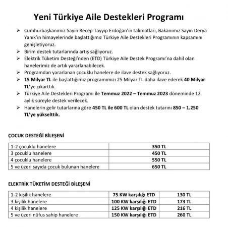 AK Parti Trabzon Milletvekili Bahar Ayvazoğlu, kapsamı genişletilen Türkiye Aile Destekleri Programına ilişkin açıklamalarda bulundu. Milletvekili Ayvazoğlu, “Cumhurbaşkanımız Sn. Recep Tayyip Erdoğan'ın liderliğinde Aile ve Sosyal Hizmetler Bakanımız Sn. Derya Yanık'ın himayelerinde Türkiye Aile Destekleri Programımızın kapsamını genişletiyoruz... İhtiyaç sahibi ailelerimizin yararlanabileceği Yeni Türkiye Aile Destekleri Programımız kapsamında; 15 Milyar TL bütçeli programımızı 25 Milyar TL ilave ile 40 Milyar TL'ye çıkarttık. Brim destek tutarlarında artış sağladık. Hanelerin gelir tutarlarına göre 450 TL ile 600 TL olan destek tutarını 850 – 1.250 TL’ye yükselttik. Çocuk Desteği Bileşeni ve Elektrik Tüketim Desteği Bileşenleri programa dahil edildi. Geçtiğimiz günlerde 3. ödemelerimizi gerçekleştirdik. 2 Milyondan fazla haneye 1 Milyar TL'den fazla ödeme gerçekleştirdik. Türkiye Aile Destekleri Programımız kapsamında hanelerimize aktardığımız şimdiye kadarki toplam tutar 2,3 Milyar TL'yi aştı. Türkiye Aile Destekleri Programımızdan faydalanmak isteyen vatandaşlarımız e-Devlet’e veya ikamet edilen yerdeki Sosyal Yardımlaşma ve Dayanışma Vakıfları’mıza başvuru yapabilirler...” açıklamalarında bulundu.MİLLETVEKİLİ KORAY AYDIN, GÜMÜŞHANE’DEN NASIL MESAJ VERDİ?Gümüşhane’de dün İstanbul Büyükşehir Belediyesi tarafından vefat eden eski İSTAÇ Genel Müdürü adına yaptırılan Bilim ve Sanat Merkezi açıldı. Merkezin açılışına İYİ Parti Genel Başkanı Meral Akşener ve İBB Başkanı Ekrem İmamoğlu ile birlikte İYİ Parti’den üst düzey isimler katıldı. Bu isimlerden biri de İYİ Parti Siyasi İşler Başkanı ve Ankara Milletvekili Koray Aydın oldu. Törene katılan Aydın, “Gümüşhane'mizin efsane Belediye Başkanı, 25. Dönem Gümüşhane Milletvekili ve İstanbul Büyükşehir Belediyesi İSTAÇ eski Genel Müdürü merhum Mustafa Canlı kardeşim adına Sn. Ekrem İmamoğlu Başkanımız tarafından yaptırılan Mustafa Canlı Bilim ve Sanat Merkezi'ni Genel Başkanımız Sn. Meral Akşener 'le hizmete açtık. Gümüşhane'mize, ülkemize ve milletimize hayırlı olsun. Emeği geçenlerden Allah razı olsun. Mustafa Canlı Başkanımızın ruhu şad olsun. Mekanı cennet olsun.” açıklamalarında bulundu.DEVA PARTİLİ GÜNAYDIN, GELİR DAĞILIMININ NASIL BOZULDUĞUNU AÇIKLADIDEVA Partisi Kurucularından Prof. Dr. İhsan Günaydın, ülkede gelir dağılımının nasıl bozulduğunu açıkladı. Merkez Bankasının politikasına dikkati çeken Günaydın, “Merkez Bankası 1 hafta vadeli repo ihale faiz oranını 150 baz puan indirdi. Bunun sonucu; faizin düşmesi ile bankalar kur korumalı mevduata daha düşük faiz ödeyecek ve KKM'nin Hazine'ye yükü artacaktır. Tavan faiz %15'den %13.5'e düştüğü için Hazine'nin ödeyeceği kur farkı artacaktır. Döviz tevdiat hesabını bozdurup kur korumalı mevduat hesabı açanlara MB'nin yapacağı kur farkı ödemesi artacaktır. Şeffaflık gereği açıklanması gereken ödemeler MB tarafından şimdiye kadar açıklanmamıştır. Negatif reel faiz(politika faizi-enflasyon) %72.95 gibi rekor düzeye çıkmıştır. KKM hariç TL vadeli mevduatın toplam mevduatta ki payı 'ye düşmüştür. Liralaşma düşerken dolarizasyon artıyor. Faizin düşmesi ve TL'den kaçışın olması sonucu yerli vatandaşların ev alması imkansız, yabancıların ev alması ise çok rahat hale gelmiştir. Bankada birikimi olmayanların ödediği vergiler Hazine tarafından bankada birikimi olanlara ödenerek gelir dağılımı bozulmaktadır.” açıklamalarında bulundu.