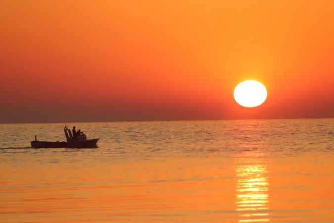 Düzce'nin Akçakoca ilçesinde gün batımı ile oluşan kızıllık güzel görüntü oluşturdu.