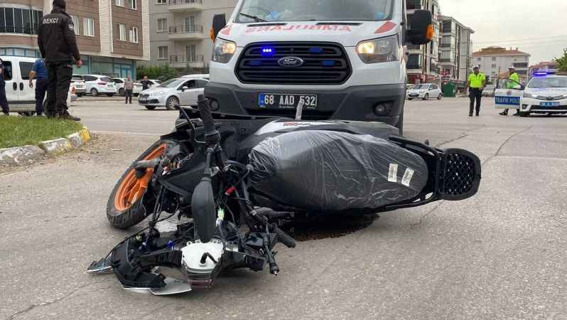 Kaza, Fatih Mahallesi Alparslan Türkeş Bulvarı’nda meydana geldi. Edinilen bilgiye göre, Funda U. idaresindeki 68 ACR 575 plakalı otomobil, Dursun D. (25) yönetimindeki motosiklet ile çarpıştı. Çarpmanın şiddetiyle motosiklet sürücüsü ve arkasında yolcu olarak bulunan Ahmet A. (28) yol kenarına savruldu. Çevredeki vatandaşların haber vermesi üzerine olay yerine polis ve ambulans sevk edildi. Kısa sürede olay yerine gelen 112 Acil Yardım ekipleri yaralılara ilk müdahaleyi olay yerinde yaptıktan sonra ambulanslarla Aksaray Eğitim ve Araştırma Hastanesi Acil Servisine kaldırdı. Burada tedavi altına alınan yaralıların sağlık durumlarının iyi olduğu öğrenilirken otomobil sürücüsü ifadesi alınmak üzere polis merkezine götürüldü.Kazayla ilgili soruşturma başlatıldı.