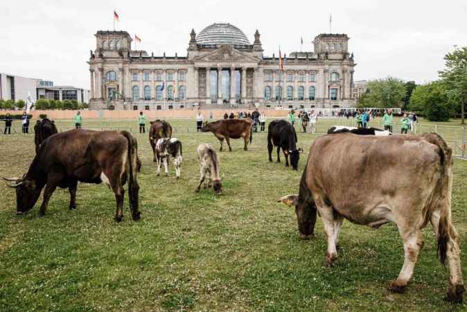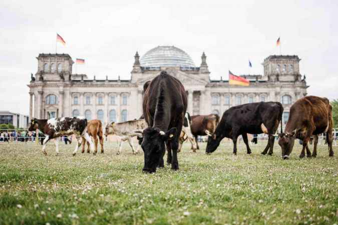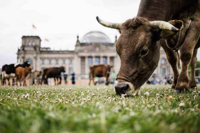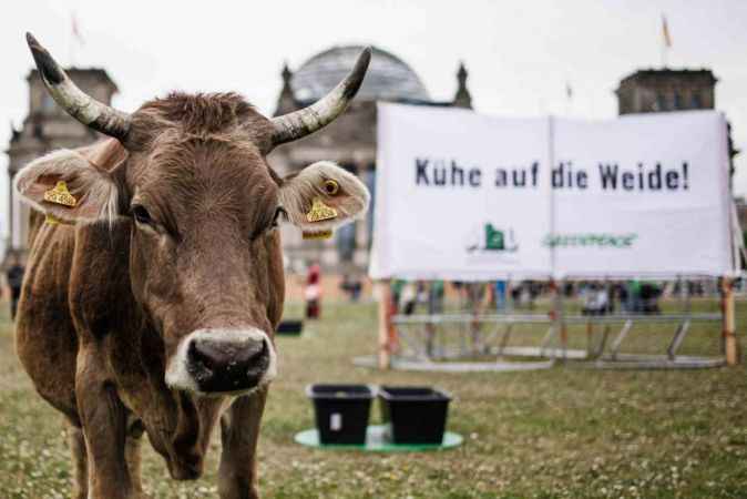 Almanya’nın başkenti Berlin, bugün alışılmadık bir eyleme sahne oldu. Greenpeace ve Kırsal Tarım Çalışma Grubu (ABL), Federal Meclis Binası Reichstag önüne 11 ineği bırakarak ineklerin doğal yaşam alanlarından koparılarak ahırlarda tutulmasını protesto etti. İneklerin habitatlarına uygun yetişmesini isteyen eylemciler, inekleri Reichstag önünde bir müddet otlattı.Greenpeace Sözcüsü Lasse van Aken yaptığı açıklamada, Reichstag önündeki 11 sığırın, milyonlarca türdeşini temsil ettiğini ve bu eylemle ineklerin otlaklara ait olduğunu göstermek istediklerini söyledi.Eylemdeki ineklerin Uckermark’taki organik bir çiftlikten getirildiğini aktaran Aken, ineklerin yer değişikliği konusunda çok meraklı olduklarını ve Reichstag önünde oldukça mutlu göründüklerini ifade etti.Hayvanlar habitatına uygun yetişsinTüm hayvanların sadece yüzde 31’inin meraya erişiminin olduğunu iddia eden eylemciler, Federal Tarım Bakanı Cem Özdemir’in otlatmayı daha çok teşvik etmesini talep ederken, çiftçilerin süt piyasasında daha adil fiyatlar elde etme fırsatına sahip olması istediklerini dile getirdi.