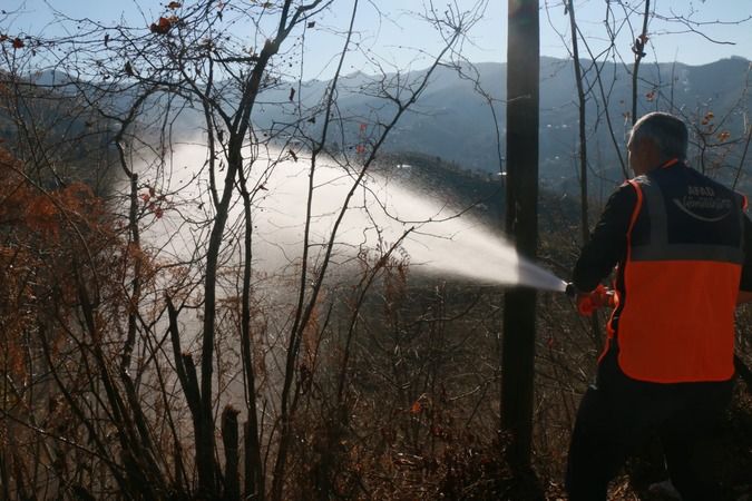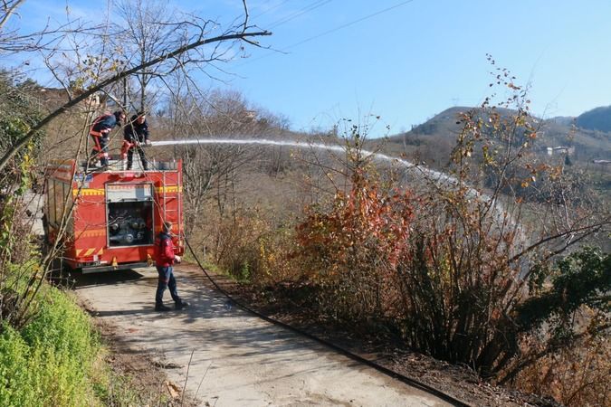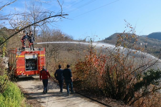 Trabzon’un Arsin ilçesinde bir fındık bahçesinde örtü yangını çıktı. Edinilen bilgiye göre Arsin’e bağlı Harmanlı Mahallesinde bir fındık bahçesinde örtü yangını çıktı. Yangının çıktığını fark eden vatandaşlar itfaiye ekiplerine haber verdi.Olay yerine gelen ekipler yangını büyümeden müdahale altına alırken çıkan yangında 3 bönüm fındık arazisi zarar gördü.Öte yandan Harmancık Mahallesi’nde esnaf ve vatandaş ziyaretinde bulunan Arsin Belediye Başkanı Muhammet Sait Gürsoy, programı sırasında yangına tanıklık etti. Çıkan yangına müdahalede bulunan Başkan Gürsoy, itfaiye ekiplerine yangını söndürmede yardım etti.