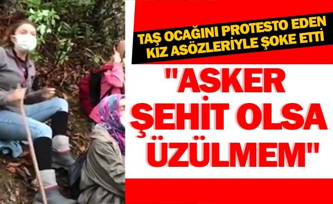 Rize İkizdere ilçesindeki İşkencedere Vadisi’ne yapılmak istenen taş ocağına karşı protestolar devam ediyor. İlk olarak köylülerin başlattığı eylemlere daha sonra CHP ve HDP'den destek gelirken, taş ocağında maden araması yapıldığına, ocağın daha sonra farklı amaçlarla kullanılacağına dair iddialar asılsız çıktı. Buna rağmen eylemlerine devam eden İkizdereliler tepkilerine devam ederken, protestolar sırasında Hediye B. isimli bir kızın söylediği ifadeler tepki topladı. "ASKER ŞEHİT OLSA ÜZÜLMEM" Protestolar sırasında çevrede nöbet tutan askerlere tepki gösteren genç kız, " Ya size bir şey olduğu zaman bizim içimiz yanıyor. Ama bundan sonra asker bile şehit olsa üzülmeyeceğim." ifadelerini kullandı. "BUNLARIN NE SUÇU VAR" Genç kızın bu söylediklerine ilk tepki ise protestolarını sürdüren diğer çevre sakinlerinden geldi. Bir kadın genç kızı, "Hayır, hayır bunların ne suçu var?" diyerek uyardı. Genç kız ise tepkisine devam ederken, "Bunların hepsinin suçu var. Evladımı askere asla göndermeyeceğim." diyerek cevap verdi. (ensonhaber)