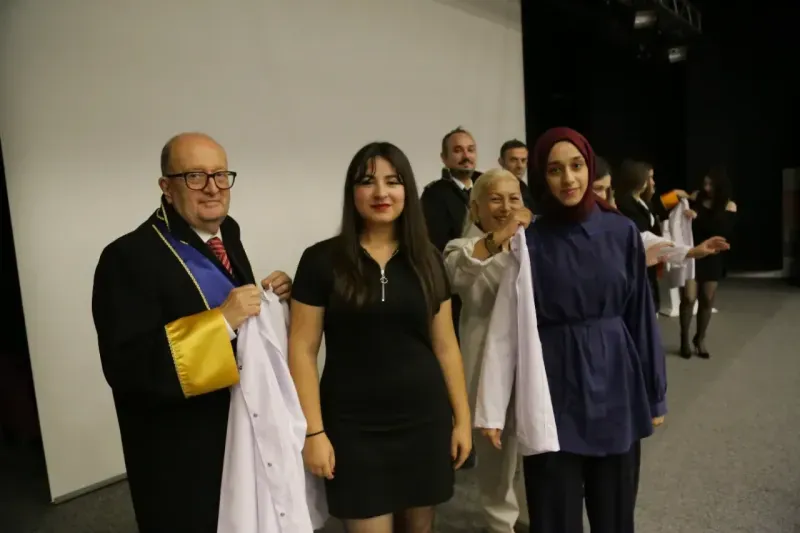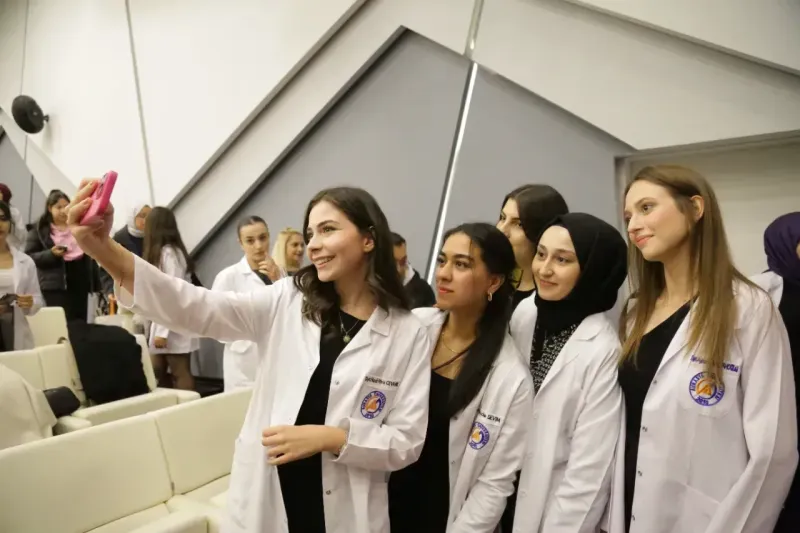 Törenin açılış konuşmasını yapan Rektör Vekili Prof. Dr. Yavuz Özoran “Bugün burada, geleceğin sağlık profesyonelleri olan siz değerli öğrencilerimizin beyaz önlük giyme töreni için bir araya geldik. Beyaz önlük, sağlık alanında çalışan bireyler için sadece bir kıyafet değil, aynı zamanda dürüstlük, nezaket, etik değerler ve insanlığa hizmeti temsil eden kutsal bir simgedir. Sağlık bilimlerinin her alanı insan sağlığına dokunan, yaşam kaynağının arttırılması ve toplumun refahını yükselten mesleklerdir. Siz değerli öğrencilerimiz; Gelecekte aldığınız eğitimle insanların hayatlarına iyilik getirecek, onların yaşamlarına dokunacaksınız, bu yolculukta bilgi ve becerinin yanı sıra merhamet, anlayış ve sorumluluk duygusu da taşımanız gerektiğini asla unutmamalısınız. Beyaz önlüğü giymek sadece mesleki bir yetki almak değil aynı zamanda insan hayatına dokunmanın kalıcı sorumluluğunu da omuzlarınıza katmak demektir” dedi.Rektör Vekili Prof. Dr. Yavuz Özoran Sağlık Bilimleri Fakültesi öğrencileri düzenlenen törende beyaz önlüklerini giyerek objektiflere poz verdiler. Avrasya ÜniversitesiAvrasya Üniversitesi