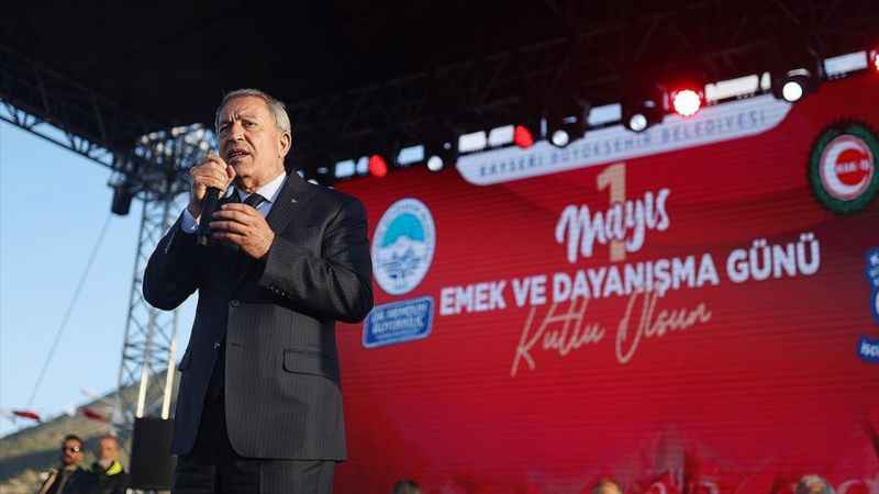 Milli Savunma Bakanı Hulusi Akar, işçileri "emek, ordusu" olarak nitelendirerek, "Sizler refahımız için üretirken Türk ordusu da güvenliğimiz için mücadele ediyor. Bu mücadelede çok şükür Mehmetçiğin emeği, alın teri, kanı ile büyük başarılar sağlandı, belli bir noktaya gelindi." dedi.AK Parti tarafından Kayseri milletvekili adayı olarak gösterilen Akar, 1 Mayıs Emek ve Dayanışma Günü dolayısıyla Kayseri Büyükşehir Belediyesi ve HAK-İŞ tarafından Paraşüt İniş Alanı'nda gerçekleştirilen faaliyette işçiler ve aileleriyle bir araya geldi.İşçilerin hakkını korumak için sendikal yaşamın önemine vurgu yapan Akar, "Bugünlere birçok problemi çöze çöze geldik. Kalan ne kadar problem varsa bunları da çözmek boynumuzun borcu. İşçimizin emeğinin, alın terinin karşılığını alması bizim için çok önemli." diye konuştu.İşçinin, emekçinin huzur ve refahını çok önemli olarak nitelendiren Akar, şunları söyledi:"Sizler emek ordusu olarak görevinizi yaparken Türk ordusu da güvenlik için çalışıyor. Sizler refahımız için üretirken bizler de güvenliğimiz için mücadele ediyoruz. Bu mücadelede çok şükür Mehmetçiğin emeği, alın teri, kanı ile büyük başarılar sağlandı, belli bir noktaya gelindi. Siz nasıl ki üreterek ülke ekonomisine katkı sağladınız, bizler de gerek yurt içi gerekse sınır ötesindeki çalışmalarımızla inşallah bu terörün üstesinden geleceğiz. Şu ana kadar yapılan çalışmalarla teröristleri kazdıkları çukurlara gömdük, barınaklarını, sığınaklarını, inlerini başlarına yıktık, yıkmaya devam ediyoruz."Teröristlerin arkasında kim olursa olsun, kim destek verirse versin mücadeleye kararlılıkla devam edileceğini belirten Akar, terörü bitirmekteki kararlılığı dile getirdi."Milli, manevi değerlerimize sahip çıkacağız"Mehmetçiğin mücadelesini desteklemek için ülkenin kendi evlatlarının, mühendislerinin, işçilerinin emekleri ile yerli ve milli savunma sanayisinde önemli gelişmelerin sağlandığını belirten Akar, "Kimseye muhtaç olmadan Silahlı Kuvvetlerimizin ihtiyaçlarının yüzde 80'ini yerli ve milli olarak karşılayacak duruma geldik. İnşallah bu devam edecek." dedi.Önemli bir seçime yaklaşıldığını aktaran Akar, "Bu seçimde milli, manevi değerlerimize sahip çıkacağız. Bazıları teröristlerle konuşuyor, onlara taahhütlerde bulunuyor, onların taleplerini karşılamaya çalışıyorlar. Bunun manası bugüne kadarki kazanımlarımızın kaybedilmesi, bundan vazgeçilmesi demek. Bunlara asil milletimizin müsaade etmeyeceğine bütün kalbimizle inanıyoruz." ifadelerini kullandı.Öte yandan Akar alana gelişinde meşale yakan gençlerin "Türkiye seninle gurur duyuyor" sloganları ile karşılandı.Konuşmasının sonunda alandakilere çiçekler atan Akar'ın ardından sanatçı Esat Kabaklı alanı dolduranlara konser verdi.