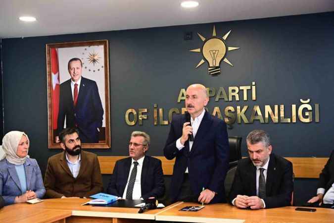 AK Parti İlçe Başkanlığı’nda açıklama yapan Karaismailoğlu, “Memleketimde bulunmak, hemşerilerimle buluşmak benim için ayrı bir gururdur. Bu topraklarda doğduk, büyüdük. Bu topraklar bizi yetiştirdi, ülkemize teslim etti. Biz her gittiğimiz yerde Ofluyuz, Trabzonluyuz diyoruz. Dünyanın neresine giderseniz gidin bir Oflu ile karşılaşırsınız” dedi.1995 yılında Of’tan ayrıldığını, ancak hiçbir zaman bağını koparmadığını aktaran Karaismailoğlu, Cumhurbaşkanı Recep Tayyip Erdoğan’ın İstanbul ve Ankara kapılarını Anadolu çocuklarına açtığını söyledi.Özellikle son 20 yılda Türkiye’nin önemli bir değişim sürecine girdiğini anlatan Karaismailoğlu, 100 yılda yapılacak işleri 20 yıla sığdırdıklarını kaydetti. Daha bitmediğini, büyük hedeflerin olduğunun altını çizen Karaismailoğlu, “Zihniyet değişti. Ülkemizin kaynakları millet için kullanıldığı zaman, vatanını milletini seven kadrolar iktidara geldiği zaman bakın nasıl dönüşümler, değişimler oluyor. Bunları yapmak için güçlü irade, güçlü lider gerekiyordu. Bizim işimiz hizmet. Gücümüzü de milletimizden alıyoruz. O yüzden büyük işler yapılıyor. Otoyollar, köprüler 20 yıl önce toplam tünel uzunluğumuz sadece 50 kilometreydi. Biz sadece Yusufeli’de 56 kilometre tünel yaptık. AK Parti’nin ilk hükümetinde 15 bin kilometre bölünmüş yol hedefi koyulmuştu. O zamanki muhalefet bunlar hayal satıyor, rüya görüyorlar diyordu. Bakın bugün iki katına çıkardık onu. Tam 29 bin kilometre. Hedefimiz bunu 38 bin kilometreye çıkarmak. Havalimanlarını halkın yolu yaptık. Bunların hepsi vatandaşımızın hayatına konfor kattı” ifadelerini kullandı.