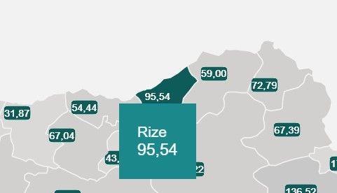Sağlık Bakanı Koca'nın yayınladığı 19-25 Haziran tarihleri arasında 100 bin kişide görülen Covid-19 vaka haritasına göre Rize doğu Karadeniz'in vaka sayısında ki lider ili olurken, Giresun ise vaka sayısının en az olduğu iller arasında yer aldı.Sağlık Bakanı Fahrettin Koca, 19-25 Haziran tarihleri arasında 100 bin kişide görülen Kovid-19 vaka sayılarını açıkladı. Buna göre; doğu Karadeniz haftalık Kovid-19 vaka sayısı, her 100 bin kişide vaka sayısı en az olan il Giresun’da her 100 kişide vaka sayısı 31,87 olurken, Trabzon’da 54.44 Artvin’de 59.00, Gümüşhane’de 67.04, en çok vaka sayısının olduğu Rize’de ise bu rakam yüz bin kişi de 95.54 vaka olarak kırmızı kategorideki iller arasına girmeye çok yaklaştı.Bakan Koca, Twitter hesabından yaptığı açıklamada, aşının önemine dikkat çekerek "İnsidans haritamızın güncel şekli, illerimizde 100.000 nüfusa karşılık gelen haftalık toplam vaka sayısını gösteriyor. Vaka sayılarının düşüş hızı azalsa da bu durum normalleşmeye engel değil. Aşı, endişesiz günlere dönüşün olmazsa olmazıdır. Aşımızı yaptıralım" ifadelerini kullandı.