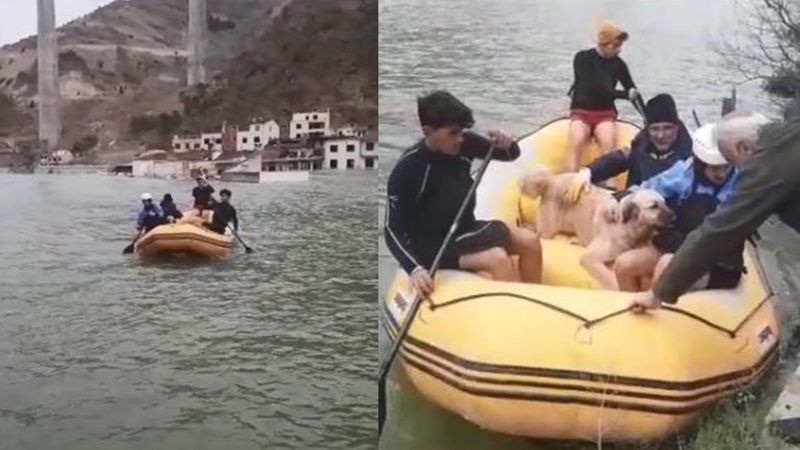 Artvin’in Yusufeli ilçesinde baraj suları ilçe merkezini tamamen kapladı. Cadde, sokak, ev ve iş yerleri sular altında kaldı. Karayla bağlantısı kesilen binalarda mahsur kalan sahipsiz sokak hayvanları hayvanseverler eşliğinde bot yardımıyla kurtarıldı. Artvin’in Yusufeli ilçesinde Çoruh nehri üzerinde yapımı tamamlanan Yusufeli Barajı su tutma işlemi nedeniyle bölgelerde bulunan sokak hayvanlarının tahliyesi sürüyor. Hayvanları Doğayı İnsanları Koruma ve Yaşatma Derneği (HAYDİKO) koordinesinde, gönüllülerin katıldığı çalışmada tespit edilen hayvanlar tek tek toplanıp güvenli bölgeye taşınıyor. Baraj sularının seviyesi 95 metreyi aşarken, ilçe merkezi de tamamen sular altında kaldı. Karayla bağlantısı kesilen binalardan kedi ve köpek sesi duyan vatandaşlar HAYDİKO gönüllülerine haber verdi. Etrafı sularla çevrili olan sokak hayvanları sığındığı binalardan, ekipler bot yardımıyla tespit etikleri kedi ve köpekleri tek tek kurtarmayı başardı. Gönüllüler bota koydukları sokak hayvanlarını nehri geçerek karaya çıkarttı. Aralarında yeni doğmuş yavru ve annelerinin de bulunduğu sokak hayvanları, tedavilerinin ardından yiyecek verilerek güvenli alana götürüldü.