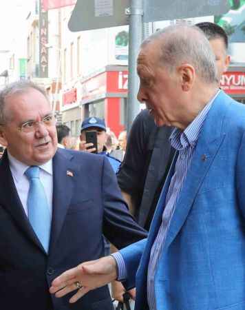 Samsun Cumhuriyet Meydanı’nda düzenlenen miting programına katılmak üzere kente gelen Cumhurbaşkanı Recep Tayyip Erdoğan, Büyükşehir Belediyesi’ni ziyaret etti. Samsunlularla selamlaşmasının ardından makama geçen Cumhurbaşkanı Erdoğan’ı Büyükşehir Belediye Başkanı Mustafa Demir karşıladı. AK Parti Genel Başkanvekili Numan Kurtulmuş da Cumhurbaşkanı Erdoğan ile birlikte belediyeye geldi.Samsun Valisi Doç. Dr. Zülkif Dağlı, AK Parti Samsun milletvekillerinin yanı sıra protokol üyelerinin de hazır bulunduğu belediye ziyaretinde, Başkan Demir, kentte yapılan çalışmalar ve devam eden projelerle ilgili sunum yaptı. Cumhurbaşkanı Erdoğan, başarılı çalışmalarından dolayı Başkan Demir’i tebrik etti. Ardından burada şeref defterine ziyaret anısına duygu ve düşüncelerini yazdı. Yaklaşık bir saat süren ziyaret sonrasında Cumhurbaşkanı Erdoğan ve beraberindekiler Cumhuriyet Meydanı’na geçerek miting programına katıldı.