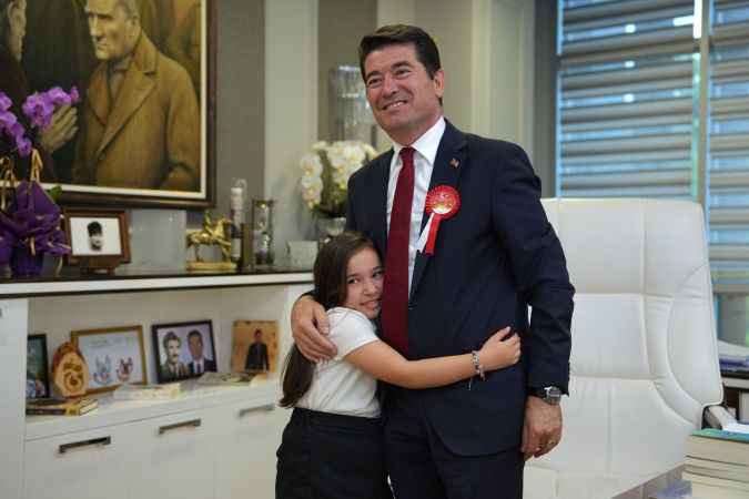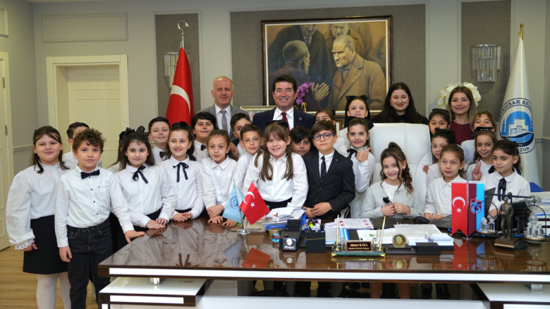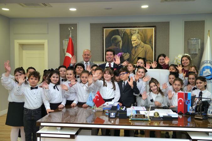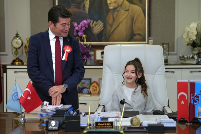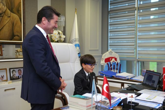 Ortahisar Belediye Başkanı Ahmet Kaya, 23 Nisan Ulusal Egemenlik ve Çocuk Bayramı dolayısıyla koltuğunu Uğur Okulları öğrencileri Remzi Suat Kara ve Lina Saka’ya devretti.