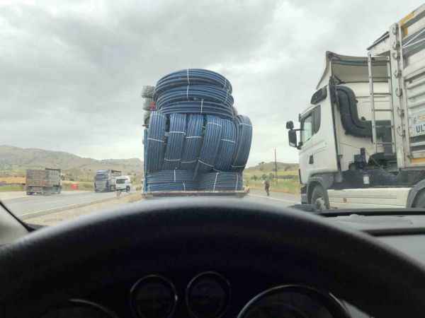 Dün akşam saatlerinde Kozluk yolunda boru yüklü kamyonet, kendi yüksekliğinin neredeyse iki katı yüksekliğine ulaşan yüküyle tehlikeye davetiye çıkardı. Aracın tehlikeli yolculuğu bir başka araçtaki vatandaşın cep telefonu kamerasına yansıdı.