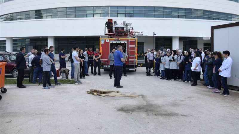 Yangın esnasında yapılacaklar konusunda hastane çalışanlarına bilgi veren ekipler, olası bir yangında yangın tüpleriyle nasıl müdahale edileceğini uygulamalı bir şekilde hastane çalışanlarına aktardılar. Yangın esnasında panik yapılmamasını hatırlatan ekipler, yüksek katlarda meydana gelebilecek yangınlarda da yapılması gerekenleri anlattılar. Gerçeği aratmayan tatbikatta bilgilerini tazeleyen hastane çalışanları, tatbikat için ekiplere teşekkür ettiler.
