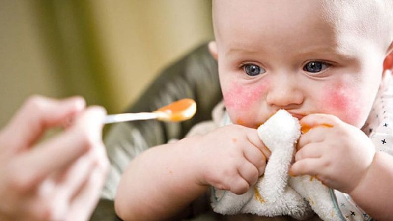 Bebeklerde besin alerjisinin belirtileri durumuna göre farklılıklar göstermektedir. Bazı bebeklerde hafif belirtiler meydana gelirken bazı bebeklerdeyse daha şiddetli belirtiler ortaya gelebilir. Gerçekleşen alerjik reaksiyonda bir veya daha azla belirti aynı zamanda kendini göstermektedir. Bebeklerde ortaya çıkan besin alerji belirtileri şunlardır;