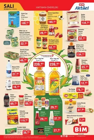 Bim aktüel tam anlamıyla sunduğu ürünlerle tüketicinin istediğine cevap veriyor. İhtiyacınız olanı çok iyi analiz eden Bim, yeni kataloğunda tam da istediğinizi kampanya listelerine dahil etmiş. Bim 8 Ekim kataloglarının ilk sayfası gıda ürünleriyle dolu. Kuşkusuz öne çıkan 2 üründe mısır yağları var. Sunar 5l ve orkide 5l mısır yağı pet ürünleri fiyatlarıyla haftaya damga vuracak. Bunlar adeta bir vitrin ürünü gibi yer alırken diğer fırsatların da yağ kampanyasından geri kalır tarafı yok. Örneğin siyah çay, bu fiyata siyah çay bulmanın imkansız olduğu dönemde Ofçay Binbirdem siyah çay 1kg için 109,50 TL gibi ağızları açık bırakacak indirimli fiyatlar listelerde görünüyor. Ayrıca bal, reçel gibi kahvaltılıklar; bitki çayları, zeytin gibi kahvaltılıklarda da kampanyalar sürüyor. Üzüm pekmezi, çiya tohumu ve tahin ile süren fırsatlarda beyaz sirke, ketçap/mayonez ve sos çeşitleri de dikkatlerden kaçmayacak. Kruvasan Bien’den, ton balığı Fide’den indirime girecek. Baldo pirinç, tuz, lavaş gibi temel gıda ürünleri de Bim 8 Ekim kataloglarında indirimden nasibini alacak. İlk sayfa bu şekilde kampanyalarla dolu. Çay, yağ, pirinç için haftanın kaçırılmayacakları demek mümkün. Diğerleri için de ihtiyacı olanın değerlendirmesi gerekebilir.