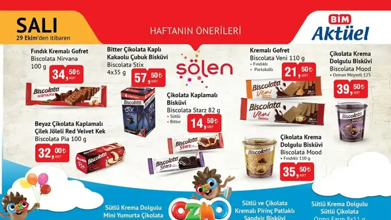 Bim 29 Ekim 2024 kataloğuyla gelecek olan indirimler resmi sitede duyuruldu. Önemli indirimlerin yer alacağı Bim Aktüel kataloglarında raflar ve listeler kampanyayla dolacak.BİM 29 Ekim 2024 aktüel indirimli katalogları salı günü fırsatlarıyla büyük heyecan uyandıracak. Geniş kitlelerce sevilen ve değer verilen Bim Aktüel kataloglarında yeni hafta dolu dolu geçecek. İlk sayfanın sunacağı ürünler bu şekilde listeleniyor. Bu ürünler arasında süt ve süt ürünleri büyük bir yer kaplamakta. Kahvaltı sofralarınızı dolduracak olan peynirler, süt ve süt ürünleri, şarküteri ürünleri dikkate değer indirimleriyle satılacak. Yoğurtlarda da indirim sunacak olan Bim 29 Ekim 2024 kataloğu için dondurulmuş ürünlerde bulunacak. Stoklarla sınırlı olduğu bilinen Bim Aktüel ürünlerinin bu Salı gelecek indirimli ürünleri böyle.Bim 29 Ekim katalogları ikinci sayfasında fırsatlar ara vermeden devam ediyor. Geniş ürün gruplarında önemli fırsatlar sunmasıyla bilinen Bim’de haftanın en merak edilen kataloglarının en tatlı fırsatları alıcısını beklemek üzere raflara gidiyor. Peki ne var bu hafta Bim 29 Ekim kataloglarında? Birbirinden leziz çikolatalar ve atıştırmalıklar ikinci sayfada yer alıyor. Ürünlere ait listeyi sunacak.
