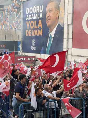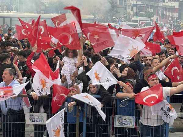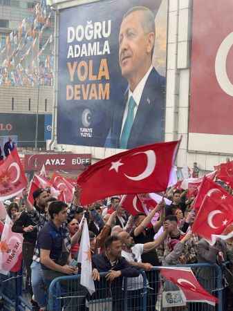 Türkiye ortalamasının üzerinde bir oy grafiğine sahip olduğu Bursa’da, Erdoğan sevdalıları ellerinde Türk Bayrakları, Ak Parti ve MHP bayrakları ile zaferi kutluyorlar.15 Temmuz Demokrasi Meydanı’nda meşaleler yakılıp, Erdoğan şarkıları söylenirken, kimisi Rabia, kimisi bozkurt işareti yaptı. Bursa’da seçime katılımın yüzde 87 civarında gerçekleştiği ve Bursa’da Cumhurbaşkanı Erdoğan’ın oy oranının Türkiye ortalamasının üzerinde olması dikkat çekti.Erdoğan’ın devasa fotoğrafının yer aldığı meydanda zafer şarkıları, kahramanlık türküleri ve seçim şarkıları söyleniyor.