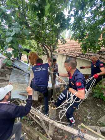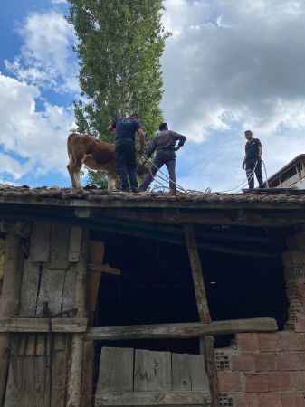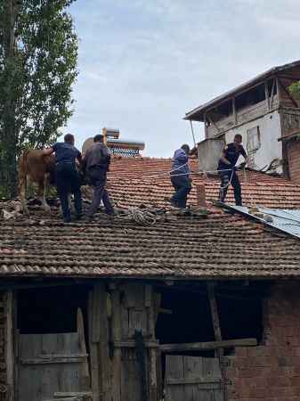 Olay, ilçeye bağlı Aşağı Örenseki köyünde meydana geldi. Latif Özdemir’in otlatmak için dışarı çıkardığı ineği çatıya çıktı. Çatıya çıkan ineği uzun süre indirmeye uğraşan Özdemir, başarılı olamayınca İskilip Belediyesi itfaiyesini arayarak yardım istedi. İhbar üzerine köye giden ekipler çatıdan ipler ve zincirler yardımı ile indirdiği ineği sahibine teslim etti.Özdemir, itfaiye ekiplerine teşekkür etti.