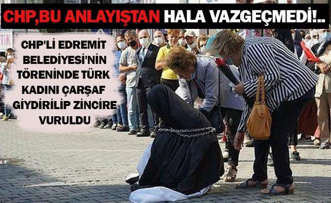 Dün, Balıkesir'in Edremit ilçesinin düşman işgalinden kurtuluşunun 99'uncu yıl dönümü dolayısıyla CHP'li Edremit Belediyesi tarafından tören düzenlendi. Gösterilere yer verilen kutlama programında canlandırılan müsamereler çok konuşuldu."ÇARŞAFLI KADINI ZİNCİRE VURUP SONRA ÖZGÜRLEŞTİRDİLER"Belediyenin izniyle Çağdaş Yaşamı Destekleme Derneği'nin (ÇYDD) törendeki kurtuluş müsameresinde skandal bir teşbih yaşandı.Üzeri siyah çarşafla kapatılan bir genç kızın zincirle bağlanması ve ardından efelerin zinciri çözüp örtüyü açıp kadının özgürleşmesiyle tamamlanan temsile, vatandaşlar tepki gösterdi