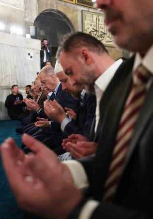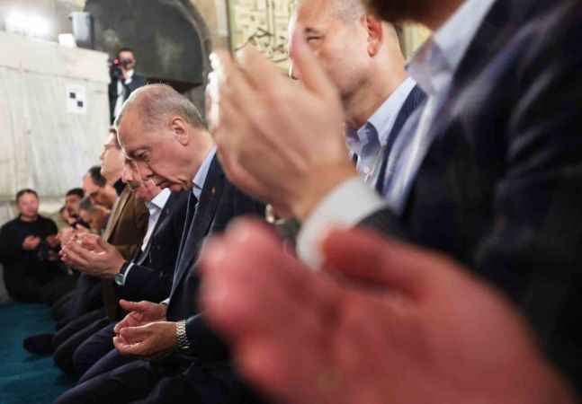 Seçim yasakları öncesi son mitingini Kasımpaşa’da gerçekleştiren Cumhurbaşkanı Recep Tayyip Erdoğan, akşam namazı için Ayasofya-i Kebir Camii Şerifi’ne geldi. Cumhurbaşkanı Erdoğan’a burada, Türkiye Büyük Millet Meclisi Başkanı Mustafa Şentop, Cumhurbaşkanlığı Sözcüsü İbrahim Kalın, İçişleri Bakanı Süleyman Soylu, Kültür ve Turizm Bakanı Mehmet Nuri Ersoy, Cumhurbaşkanlığı İletişim Başkanı Fahrettin Altun ve İstanbul Valisi Ali Yerlikaya eşlik etti. Erdoğan, akşam namazının ardından yatsı namazını da Ayasofya’da kıldıktan sonra buradan ayrıldı.