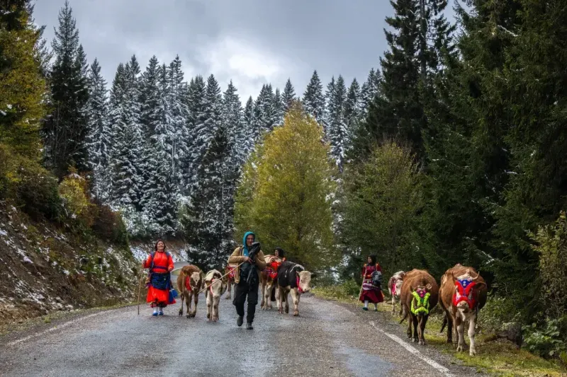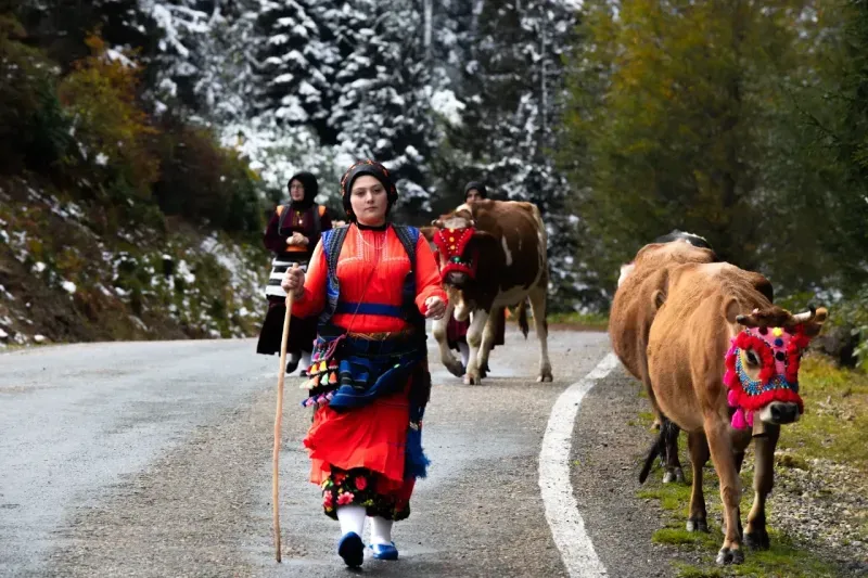 Bir kısmı geçen ay dönmesine rağmen hava koşulları elverdiği sürece yaylalarda kalmayı sürdüren besiciler, son günlerde sıcaklıkların hissedilir şekilde düşmesi ve kar yağışıyla dönüşe geçti.Rengarenk süsledikleri hayvanlarına zil takan, kendileri de yöresel kıyafetlerini giyen kadınların da aralarında bulunduğu vatandaşlar, yer yer beyaza bürünmüş Doğu Karadeniz'in eşsiz güzellikleri arasında evlerine yürüyor.Gatağacı Yaylası'ndan Şalpazarı'nın Sinlice köyüne dönen besicilerden Salih Usta, AA muhabirine, ekim ortalarında havanın soğumasıyla köylerine döndükleri söyledi.Yaylacılık geleneğini yıllardır sürdürdüklerini, haziran ayında hayvanlarını süsleyerek yaylaya çıkardıklarını anlatan Usta, bunun güzel bir yolculuk olduğunu ifade etti.Usta'nın kızı Özlem Usta ise haziranda yaylaya çıktıklarını, yaylada tereyağı ve peynir yaptıkları kaydetti.Fotoğraf sanatçısı Mustafa Türkmen de Ağasar göçünün asırlardır devam ettiğini dile getirerek, günümüzde bu yolculuğun araçlarla yapıldığını ancak bazı ailelerin bu geleneği devam ettirdiğini söyledi.Salih Usta ve ailesinin yaklaşık 12 kilometrelik göç yolculuğu yaptığını aktaran Türkmen, kendisinin de yıllardır bu göçü fotoğraflayarak geleneği yaşatmaya çalıştığını aktardı.