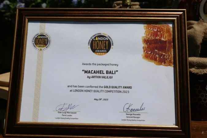 İngiltere’nin başkenti Londra’da düzenlenen “Bal Ödülleri” yarışmasında “Altın Bal” ödülünü alan Macahel balının lansmanı Artvin'de gerçekleştirildi. Türkiye’nin ilk ve tek biyosfer rezerv alanı olan Artvin'in Borçka ilçesine bağlı Camili (Macahel) bölgesinde üretilen bal, lezzetini dünyaya kanıtladı. Dünyanın en prestijli ve kapsamlı bal yarışmalarından olan 26-27 Mayıs tarihinde gerçekleştirilen London International Honey Awards (LIHA) 2023’de, Macahel balı altın ödüle layık görüldü. Birçok ülkeden yüzlerce firmanın kendi ürettiği ballarla katıldığı “Bal Ödülleri” yarışmasına katılan Macahel bölgesinde bulunan 6 köyün arıcıları yarışmanın tüm aşamalarını başarıyla geçti.Laboratuvar testlerine tabi tutulan ve bu aşamaları başarı ile geçen bal, daha sonra aralarında İtalya Tarımsal Araştırma ve Ekonomi Konseyi (CREA) üyelerinin de yer aldığı jüri tarafından kalite, doku, koku ve lezzet kriterlerine göre değerlendirildi. Yapılan değerlendirmeler sonucunda Artvin Macahel balı “Altın Bal” ödülünü alarak kalitesini bir kere daha gösterdi. Zengin fauna ve florası ile dikkat çeken Macahel, Türkiye’de bulunan 10 bin çeşit bitki türünün 2 bin 727 çeşidini bünyesinde barındırıyor. Koruma altında olan bölgeye has saf Kafkas arı ırkından elde edilen 17 çeşit bal, bölge halkının temel geçim kaynakları arasında yer alıyor. Ödüllü Macahel balının tanıtım ve bal sağım etkinliğine katılan Artvin Valisi Yılmaz Doruk, Macahel balının dünya çapında tescillenmesinin Türkiye ve Artvin için önemli bir gelişme olduğunu söyledi.Macahel bölgesinde yaşayan vatandaşların ballarının kalitesinin farkında olmasının sevindirici olduğunu aktaran Vali Doruk, “Bu değere sahip olma, onları koruma ve geliştirme anlamında üst düzey farkın darlıklarının olduğunu görüyoruz. Bunun sonucunu almak gerekiyordu. Biz de valilik olarak ilimizdeki bu kıymetli bölgeyi kıymetli ürünleriyle birlikte ülkemizin, milletimizin ve dünyanın kullanımına sunmak amacıyla bir takım çalışmalar yapıyoruz” dedi. Yarışmada alınan birincilik ile balın kalitesinin dünya çapında genel kabul gördüğünü vurgulayan Doruk, “Bütün bu çalışmalarımızın sonucunda bu kazanımlarımızın birini ortaya koymak için buradayız. Çalışmalarımız çerçevesinde yürüttüğümüz faaliyet sonucu Macahel’den gösterdiğimiz bal dünya çapında ödül aldı. Londra’da yapılan yarışma sonucunda altın bal ödülünü kazandı. Biz balımızın kalitesini biliyorduk ama bu sonuç ile de genel kabul görmüş oldu” diye konuştu.