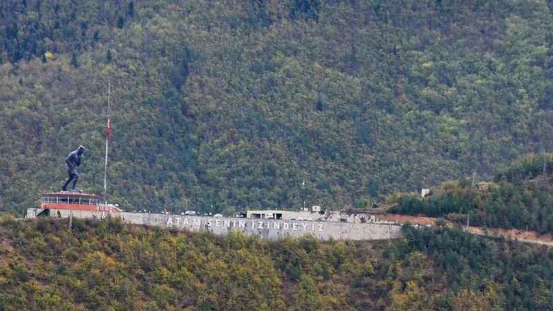 Türkiye’nin en büyük Atatürk heykelinin yer aldığı Artvin Atatepe’de bayrak yarına indirildiArtvin’de Türkiye Cumhuriyeti’nin kurucusu Gazi Mustafa Kemal Atatürk’ün aramızdan ayrılışının 85’inci yıl dönümü nedeniyle tören düzenlendi. Yurt genelinde olduğu gibi Artvin’de de saatler 9’u 5 geçe kentte bayraklar yarıya indirilirken, sirenler eşliğinde ataya saygı ve minnet gösterildi. Artvin'de 22 metre yüksekliği ile Türkiye'nin en büyük Atatürk heykelinin yer aldığı Atatepe'de Türk bayrağı yarıya indirilmesi kayıt altına alındı.