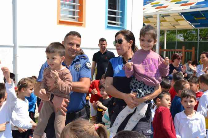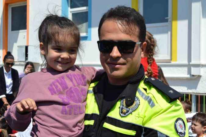 “Trafik Haftası” etkinlikleri çerçevesinde Özel Fethiye Anaokulu’nda gerçekleştirilen etkinlikte renkli görüntüler yaşandı. Fethiye İlçe Emniyet Müdürlüğü Trafik Şube ekipleri öncülüğünde gerçekleştirilen programda ekipler trafik bilincinin aşılanması, trafik işaret ve ışıklarında ne şekilde hareket edileceği konularında bilgiler verdi.Program sonunda anaokulu öğrencileri hareketli şarkılar eşliğinde dans edip polis araçlarıyla fotoğraf çekinerek keyifli anlar yaşadı. Nostaljik polis aracıda çocukların yoğun ilgisini çekti.Programda Fethiye Trafik Tescil ve Denetleme Büro Amiri Gökhan Kam, anaokulu öğrencilerine trafik hakkında bilinmesi gerekenleri aktardı.Fethiye Trafik Tescil ve Denetleme Büro Amiri Gökhan Kam, “Trafik haftasına girdiğimiz bugünlerde okullara gidip, trafik bilincini aşılamaya çalışıyoruz. Bu konuda en büyük şansımız Fethiye İlçe Emniyet Müdürü Kayhan Dadaşolu ve İl Emniyet Müdürü Süleyman Suvat Dilberoğlu eski trafikçi oldukları için bizim arkamızdalar. Etkinliklerimize büyük destek veriyorlar. Okullarda ve trafik eğitim parkında eğitimlerimiz devam edecek. Çocuklara kalıcı bilgiler aktarmaya çalışıyoruz” dedi.
