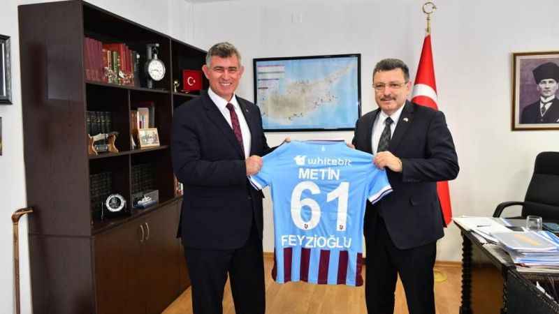 Başkan Genç Büyükelçi Feyzioğlu’na, Meclis Başkanı Töre’ye, İçişleri Bakanı Dursun Oğuz’a ve Güzelyurt Belediye Başkanı Mahmut Özçınar’a Trabzonspor forması hediye etti, onlar da Genç’e plaket takdim etti.
