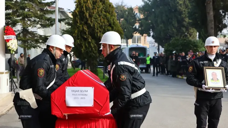 Sakarya'nın Sapanca ilçesinde görevi başındayken kalp krizi geçirip kaldırıldığı hastanede yaşamını yitiren polis memuru, törenle memleketine uğurlandı.Sapanca İlçe Emniyet Müdürlüğü kadrosuna görevli polis memuru Yaşar Sevim (52), dün görevi esnasında geçirdiği rahatsızlık neticesinde hastaneye kaldırıldı.Sevim, burada yapılan müdahalelere rağmen kurtarılamayarak hayatını kaybetti. Sevim için İl Emniyet Müdürlüğü'nde tören düzenlendi.Törene; Sakarya Valisi Rahmi Doğan, İl Emniyet Müdürü Selçuk Doğuş, İl Jandarma Komutanı Nejdet Karaca, mesai arkadaşları ve yakınları katıldı. Düzenlenen törenin ardından polis memuru Yaşar Sevim'in cenazesi, toprağa verilmek üzere memleketi Trabzon Akçaabat'a gönderildi.