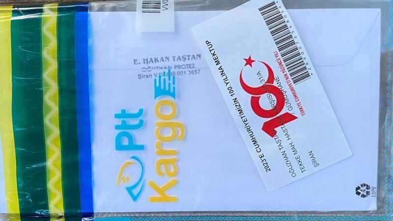 Gümüşhane’nin Şiran ilçesinde yaşayan esnaf Ertuğrul Hakan Taştan’ın 21 yıl önce Cumhuriyetin 100. yılı nedeniyle oğlu ve eşine yazdığı mektup ellerine ulaştı.