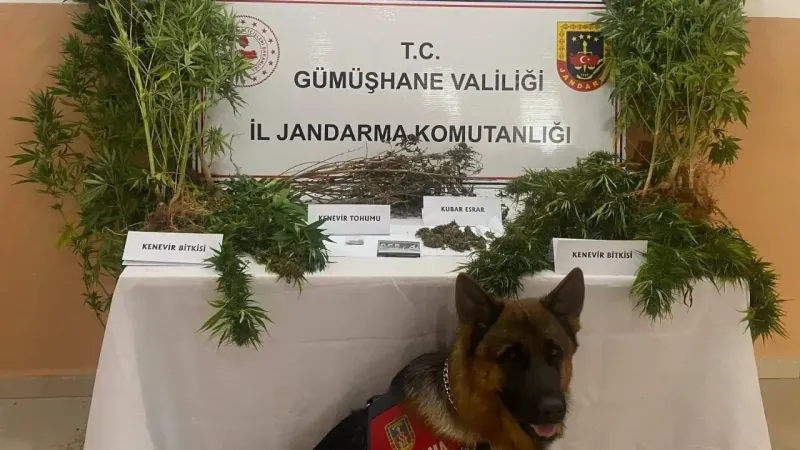 Edinilen bilgiye göre, Gümüşhane İl Jandarma Komutanlığı’na bağlı Kaçakçılık ve Organize Suçlarla Mücadele Şube (KOM) ekipleri tarafından yapılan istihbarat çalışmaları neticesinde, Şiran ilçesi Susuz köyünde ikamet eden H.Ç. isimli şahsın bahçesine kenevir ektiği bilgisine ulaşıldı.Şiran Cumhuriyet Savcılığı’nın talimatı doğrultusunda harekete geçen KOM ve İstihbarat Şube ekipleri H.Ç.’ye ait bahçe ve eklentilerinde uyuşturucu arama köpeği ‘Delil’ ile birlikte arama gerçekleştirdi.Yapılan arama neticesinde şahsa ait bahçe ve eklentilerde 20 adet kök kenevir bitkisi, 303 gram kubar esrar maddesi, 2 gram kenevir tohumu ve 1 adet sigara sarma kâğıdı ele geçirildi.Hakkında adli tahkikata başlanan H.Ç. çıkarıldığı mahkemece tutuklanarak cezaevine gönderildi.