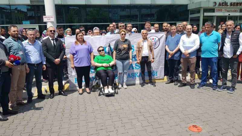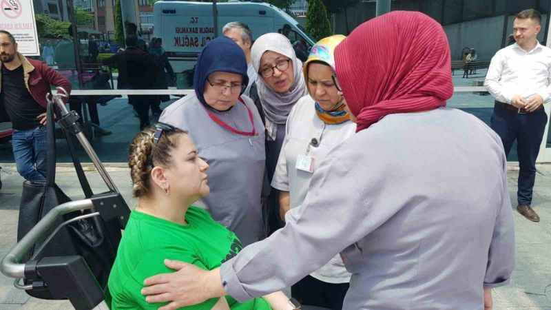 Karabük Eğitim ve Araştırma Hastanesinde temizlik görevlisi Tuğba Karakaş, iddiaya göre hasta yakını Binnaz D. tarafından saçından tutulup yere düşürülerek sürüklendi. Karakaş, başka bir ilde hemşire olduğu öğrenilen Binnaz D.’den şikayetçi oldu.Öz Sağlık-İş Sendikası Karabük Şube Başkanı Damla Yılmaz Ekemen, olaya ilişkin hastane önünde basın açıklaması yaptı. Ekemen, nöroloji servisinde görev yapan Tuğba Karakaş’ın hasta sevki sırasında asansör önünde bir hasta yakını tarafından darbedildiğini, saldırıya uğradığını ve sözlü olarak taciz edildiğini ifade etti. Olayın kendilerini derinden üzdüğünü dile getiren Ekemen, "Yaşanan sağlıkta şiddet olayının faili başka sağlık çalışanı. Hep birlikte kenetlendik ve bu olayı kınıyoruz" dedi.Ekemen, büyük fedakarlıklarla şifa dağıtmaya çalışan hemşirelere sonsuz saygı duyduklarını anlatarak, "Hemşire sıfatı ile şifa dağıtan bu arkadaşın hasta yakını sıfatı ile bu hale gelmiş olmasının, bir başka sağlık çalışanına saldırmasının artık akılla, irfanla yapılacak bir açıklamasının olmadığını düşünüyoruz" diye konuştu.Sendika olarak hadisenin ilk anından itibaren üyeleri Karakaş’ın yanında olduklarını söyleyen Ekemen, "Saldırganın işlediği suçun cezasını alması için Öz Sağlık-İş olarak olayın arkasını bırakmayacağız. Darbedilen arkadaşımıza acil şifalar diliyor, bir daha bu olayların yaşanmaması için uygulanabilir, gerçekçi ve suça özendirici olmayan tedbirlerin bir an önce alınması konusunda yetkilileri bir kez daha uyarıyoruz" ifadesini kullandı.Karakaş da gazetecilere yaptığı açıklamada, hasta yakınının ilk geldiğinden itibaren sıkıntı çıkardığını öne sürerek, "Hastasını yoğun bakıma indireceğimiz için hırçınlıklar yaptı. Asansörden çıktıktan sonra ameliyathanenin önünde arkamdan saçımdan tutarak yere yatırdı. Sonrasını hatırlamıyorum zaten. Şikayetçi oldum" şeklinde konuştu.