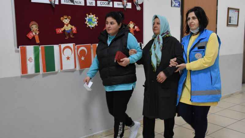 Trabzon'da çeşitli hastanelerde tedavileri devam eden vatandaşlar, Trabzon Sağlık Müdürlüğü Evde Sağlık Hizmetleri ekipleri yardımıyla okullara giderek oy kullandı.Hastanenin dahiliye servisinde tedavisi devam eden Ayten Söğüt de ekiplerin ve kızının yardımıyla oyunu kullandı.