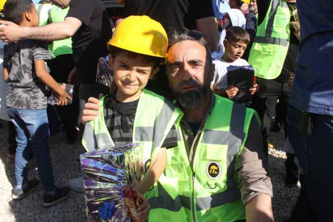 Kahramanmaraş merkezli 6 Şubat'taki depremlerden etkilenen Hatay'da, enkazlarda arama kurtarma çalışmalarında görev alan madenciler, 1 Mayıs Emek ve Dayanışma Günü'nde depremzedelerle bir araya geldi.Genel Maden İşçileri Sendikası üyesi maden işçileri, Aydın Valiliği Kıl Çadır Kenti'nde yaşayan depremzedeleri ziyaret etti.İşçiler burada çeşitli hediyeler verdikleri, çikolata ikram ettikleri çocuklarla vakit geçirdi.Maden işçileri, talepleri üzerine baret ve yeleklerini de çocuklara hediye etti.İşçilerden Adem Usluoğlu, gazetecilere, depremzedelerin gülümsemesini sağlamak için ziyaret gerçekleştirdiklerini söyledi.Depremde girdikleri enkazların kendileri için zor olmadığını belirten Usluoğlu, "Biz madenciler olarak depremde her bölgede mücadele ettik. Bizler zaten metrelerce yerin altında mücadele eden insanlarız. Bizim için depremde girilen yerler çok önemli değildi ama insanlara uzanan eller çok kıymetliydi." dedi.- "Depremzedelere destek olmak için buraya geldik"Maden işçilerinden Cüneyt Özfidan da depremin ardından Zonguldak'tan Hatay'a gelerek arama kurtarma çalışmaları gerçekleştirdiklerini ifade etti.Depremzedelere destek olmak için Hatay'a geldiklerini aktaran Özfidan, "1 Mayıs Emek ve Dayanışma Günü nedeniyle sendikamız önderliğinde buraya geldik. Başta çocuklarımız olmak üzere, burada işçi sınıfına, emekçi sınıfına ve depremzedelere destek olmak için buraya geldik." diye konuştu.- "Madenciler cansiparane mücadele etti"Genel Maden İşçileri Sendikası Genel Başkanı Hakan Yeşil, madencilerin deprem sonrasında arama kurtarma faaliyetlerinde büyük çaba verdiklerini söyledi.Madencilerin talebi üzerine kente ziyaret gerçekleştirdiklerini belirten Yeşil, şunları kaydetti:"Madenci arkadaşlarımızla beraber enkazdan kurtarılan depremzede vatandaşlarımıza moral olmak için buraya geldik. 11 ilde 3 bin 850 madenci arkadaşımızla beraber arama kurtarma faaliyetlerine katıldık. Hatay'da yıkımın daha fazla olması nedeniyle madencilerden 2 bin 200'ü Hatay'da görev aldı. Arkadaşlarımız enkaz altındaki bir cana nefes olabilmek için kendi hayatlarını tehlikeye attılar, cansiparane mücadele ettiler. Hepsine teşekkür ediyorum. Bugün bu ziyarette gördüğümüz, o günlerden geriye kalan anılar... Madenci arkadaşlarımız da çok mutlular, gözlerinden de okunuyor."
