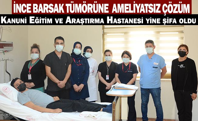 Burdur’da ikamet eden 34 yaşında K.O.’nun, karın ağrısı nedeniyle gittiği hastanede yapılan endoskopisinde oniki parmak barsağında 4 cm’lik tümör tespit edildi. Burdur’dan SBÜ Kanuni Eğitim ve Araştırma Hastanesine sevk edilen hasta, burada ameliyata alındı. Hastanın tümörü 60 dakikalık işlem sonunda açık ameliyata gerek kalmadan ESD yöntemi ile Uzm. Dr. Abdullah Murat Buyruk tarafından çıkarıldı. İşlem sonunda yaklaşık 1 hafta takip edilen hasta, sağlığına kavuşması üzerine taburcu edildi. Operasyonla ilgili yapılan açıklamada, “İnce barsak tümörlerinin açık ameliyatı hastalar ve hekimler için oldukça zor ve risklidir. Bu bölgede ESD yöntemi ise dünyada ve ülkemizde çok az merkezde uygulanabilmektedir. Endoskopi ünitemizde son 2 yılda ESD yöntemi ile yemek borusu, mide, ince barsak ve kalın barsak tümörlü Türkiye’nin birçok yerinden 100’den fazla hasta bu yöntemle tedavi edilmiştir. Hastanemiz ayrıca diğer ileri endoskopik ameliyatlar (ESD, POEM, G-POEM, EFTR, STER, LECS) açısından da referans merkezlerden birisidir. Bu işlemlerin gerçekleşebilmesinde desteği olan hastane yönetimimize, endoskopi ünitesindeki ekibimiz Rahime ŞAHİN, Adem ŞAHİN, Gülsen BAHAR ŞAHİN, Selma ALTUNCU, Merve BİLGİN, anestezi ekibimize ve cerrahi ekibimiz Op. Dr. Aydın AKTAŞ, Op. Dr.Ekrem KOÇ, Op. Dr. Coşkun AYDIN, Op.Dr.Halil Afşin TAŞDELEN teşekkür ederiz.” ifadelerine yer verildi.