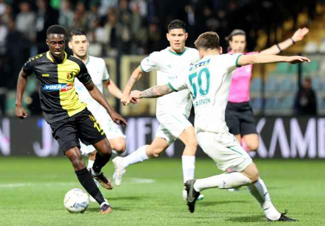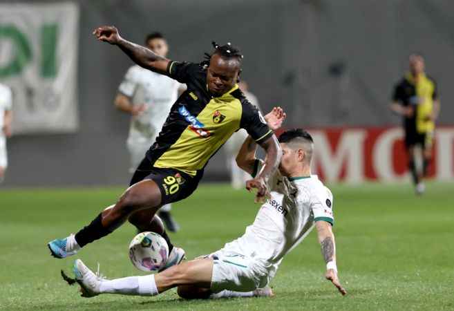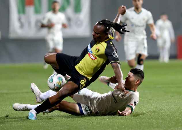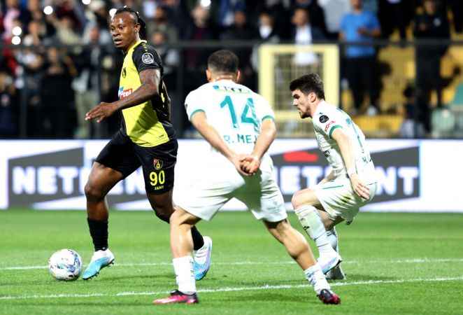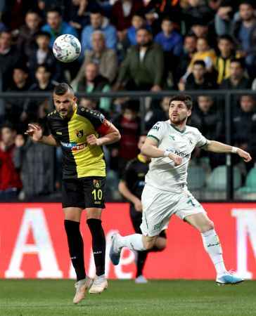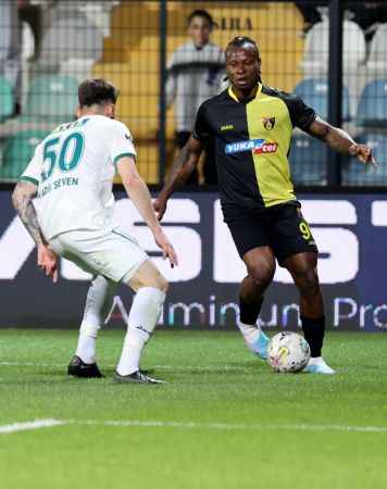 Spor Toto Süper Lig'in 32. hafta mücadelesinde İstanbulspor ile Bitexen Giresunspor takımları Esenyurt Necmi Kadıoğlu Stadı'nda karşı karşıya geldi. İstanbulspor oyuncusu Eduart Rroca (10) bir pozisyonda Bitexen Giresunspor oyuncusu Hayrullah Bilazer (77) ile mücadele etti.