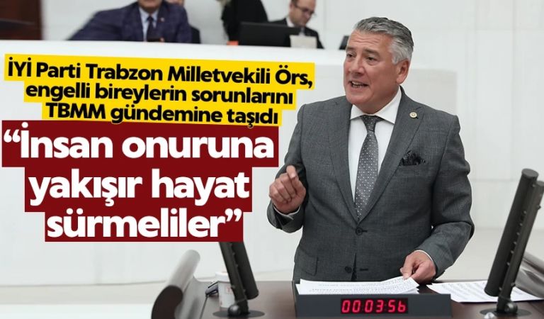 İYİ Parti Trabzon Milletvekili Dr. Hüseyin Örs, TBMM Genel Kurulu’nda yaptığı konuşmada engelli vatandaşların sorunlarını gündeme getirdi. Engelli bireylerin her geçen gün artığını ve sosyal devlet anlayışında eşit yaşama haklara sahip olmaları gerektiğini söyleyen Örs, “sosyal güvenlik ödemelerinde partizanlığın önüne geçilmelidir” dedi.Milletvekili Hüseyin Örs, yaptığı konuşmada şu ifadeleri kullandı: “Dünya Engellilik Raporu'na göre engelli insanların sayısı her geçen gün artmaktadır. Engellilere verilen haklar, sosyal devlet anlayışında eşit yaşama hakkı kapsamında yapılması gereken düzenlemelerdir. Engellilerle ilgili atılacak her adımda bu gerçek göz önünde bulundurulmalıdır. Engellilerin insan onuruna yaraşır bir şekilde yaşamlarını sürdürebilmeleri için, tüm sosyal ve ekonomik haklara sahip olma bakımından pozitif ayrımcılık kapsamında değerlendirilmesi gerekir.
