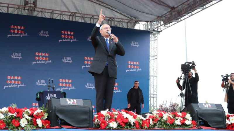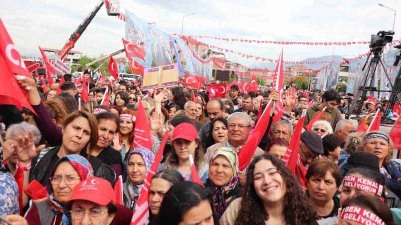 Hava muhalefeti nedeniyle uçağı rötar yapan CHP Genel Başkanı Kemal Kılıçdaroğlu, mitingin yapılacağı alana da gecikmeyle ulaştı. İstanbul Büyükşehir Belediye Başkanı Ekrem İmamoğlu ve Ankara Büyükşehir Belediye Başkanı Mansur Yavaş’ın yaptığı konuşmaların ardından kürsüye Kılıçdaroğlu, partililere vaatlerini sıraladı.Türkiye’yi birlikte büyüteceklerini ve güzel bir Türkiye kuracaklarını ifade eden Kılıçdaroğlu, “Kadını, erkeği, genci ve yaşlısıyla toplumsal bir hareket etmemiz lazım. Yaşanılan sıkıntılardan kurtulmak için Türkiye’nin bir değişime ihtiyacı var. Birlikte sandığa gideceğiz, beraber ve birlikte Türkiye’yi birlikte değiştireceğiz. Halkın iradesi ve demokrasiyle geliyoruz. 5 milyon 300 bin genç ilk kez sandığa gidecek ve Türkiye’nin kaderini değiştirecek. Sizlerin oylarıyla o koltuğa oturduğumda, sizler için çalışacağım ve sizlere için yeni bir umut olacağız. Arkadaşlarla birlikte pikniğe ve gezmeye değil, beraber sandığa gideceğiz. Gençlerimiz ve kadınlarımızın çözüm bekleyen tüm sorunlarını çözeceğiz. Sevgili annelere sözüm var; çocuklarınız okulda suyunu içecek, yemeğini yiyip evine tok dönecek. Artık tüm çocuklar, okullarında en iyi şekilde beslenecek ve sosyal devlet olmanın gereği yerine getirilecek. Tarlada çalışan kadın ve gençlerin sosyal güvenlik primlerini devlet ödeyecek. Tarlada çalışan kadınlar, günü geldiği zaman mutlaka emekli olacak. Aile Sigortası Desteğini getireceğiz. Hiçbir ailenin geliri, asgari ücretin altında almayacak. Kadının hesabına yatacak, gidip çekecek ailesinin karnını doyuracak. Onun yoksul olduğunu, ondan başka kimse bilmeyecek. Hiçbir ailenin elektriği, suyu ve gazı kesilmeyecek. Emeklilere 2015 tarihinden bu yana Ramazan ve Kurban bayramlarımda en az 2 asgari ücret kadar ikramiye verilmesi gerektiğini söyledim. Sonra bin lira verdiler ve şimdi biraz daha artırdılar. Söz veriyorum, Kurban Bayramında 15 bin lirayı hesaplarınızda göreceksiniz” dedi.“100 bin polis ve öğretmen ataması yağacağız”Halktan birisi olduğunu ve herkes gibi yaşadığını ifade eden Kılıçdaroğlu, “Siz oy verir, beni seçerseniz saraya değil Gazi Mustafa Kemal Atatürk’ün Çankaya Köşküne gideceğim. Kimse benim milliyetçiliğimi sorgulayamaz. Bizim çizgimiz vatanımız ve bayrağımızdır. CHP, tarihsel kökleri olan, Atatürk’ten miras kalan bir partidir. Biz bu ülkeye adanmış bir gelenekten geliyoruz. Çıkıp açık ve net olarak bütün duruşumuzu sergiledik. Sizden ricam, sandığa gidip, elinize vicdanınıza koyarak oyunuzu kullanın. Bundan emin olmanızı isterim. Sizin hayalleriniz Bay Kemal’in hedefi olacak. Hiç endişe etmeyin, bunların tamamını gerçekleştireceğiz. Gençler, sandığa gideceksiniz ve oyunuzu kullanacaksınız. Siz huzur içinde yaşamak istiyorsunuz. Bir tweet atmaya dahi çekiniyorsunuz. Anneniz, babanız hemen ’Aman ha oğlum, bu tweet’i sil, başımız belaya girer’ diyor. Benim size sözüm var, en rahat eleştireceğiniz cumhurbaşkanı, bu kardeşiniz olacak. Bizleri koruyan polislerin de sorunları var. Onlar söyleyemiyor ama ben biliyorum. Polis kardeşlerimize sözüm var. Göreve gelir gelmez, 100 bin güvenlik görevlisi alacağız. Polis kardeşimiz 8 saat çalışıp evine dönecek. Öğretmen kardeşlerimize de sözüm var. Göreve gelir gelmez, atama bekleyen 100 bin öğretmenin atamasını yapacağız. Esnaf kardeşlerimiz zor durumda. 6 lider söz verdik. Göreve gelince Esnaf Bakanlığı kuracağız. Alışveriş merkezlerini 1 gün kapatacağız. O gün vatandaş gidip esnaftan alışveriş yapacak. Hiç kimsenin, hiçbir üreticinin zarar etmeyeceği bir yapı kuracağız. Alın teri dökenin alnını öpeceğim, alın terinin hakkını vereceğim” şeklinde konuştu.“Bay Kemal kul hakkı yemez, kul hakkı yedirmez”6 lider olarak ülkenin sorunlarını çok iyi bildiklerini ve bunları çözmek için gerekli çalışmaları yaptıklarını kaydeden Kılıçdaroğlu, sözlerini şöyle tamamladı:“Sizin hayalleriniz, bu kardeşinizin hedefi olacak. İki grup benimle uğraşır. Birincisi 5’li çeteler. 5’li çetelerin paralarını getireceğim, memleketi soydular soğana çevirdiler. Efendim ’Acaba Bay Kemal’i nasıl cumhurbaşkanı adayı yapmayız?’ Bununla ilgili uğraştılar, didindiler, dosyalarımı araştırdılar. 27,5 yıllık devlet görevimi araştırdılar. Allah’a çok şükür hiçbir şey bulamadılar. Şimdi nasıl ayağını kaydırırız. Ne sizin gücünüz yeter ne de başkalarının gücü yeter. Allah nasip ederse milletin oylarıyla olacağız. İkincisi, uyuşturucu baronları da uğraşıyor. Uyuşturucu baronlarının kökünü kazıyacağım, kökünü. Gencecik evlatlarınızı hiç kimsenin zehirlemesine izin vermeyeceğiz. Suriyeli kardeşlerimizi en geç 2 yıl içinde kendi ülkelerine uğurlayacağız. Onların yolunu, köprüsünü, okulunu, kreşini Avrupa Birliği fonlarıyla bizim müteahhitlerimiz yapacak. Onun için 2 yıl diyorum. 2 yıl içinde göndereceğiz ve bu ülkeye huzuru getireceğiz. Benim evladım, benim çocuğum işsiz, onlar asgari ücretin yarısıyla iş buluyor ve çalışıyor. Milyonlarca evladımız işsiz. Bay Kemal kul hakkı yemez, kul hakkı yedirmez. Ayrışma ve kutuplaşmalara son vereceğim. Çok güzel ve çok zengin bir ülkeyiz. Ne ezen, ne ezilen, insanca hakça bir düzeni bu ülkeye getireceğiz."Konuşmasının ardından milletvekili adaylarını Denizlilere tanıtarak oy isteyen Kılıçdaroğlu, programın ardından beraberindekilerle birlikte kentten ayrıldı.