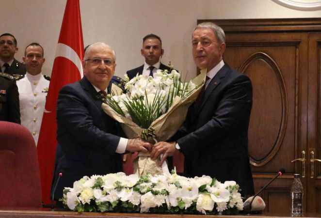 Resmi Gazete’de yayımlanan Cumhurbaşkanlığı Atama Kararı ile Hulusi Akar’ın yerine Milli Savunma Bakanlığına Genelkurmay Başkanı Yaşar Güler atandı. Güler, bakanlıkta düzenlenen devir teslim töreniyle görevine başladı.“Etki alanımız üç kıta, ilgi alanımız bütün dünya olmuştur”Törende konuşan Hulusi Akar, küresel ve bölgesel gelişmelerin aralıksız devam ettiği bir dönemden geçildiğini belirterek, “Çevremizde artan risk, tehdit ve tehlikelerle karşı karşıya geliyoruz. Azimle, kararlılıkla hep birlikte çalıştık, çalışmaya devam edeceğiz. Arkadaşlarımızın bu sırada gösterdikleri performansı yakından takip ettik ve gerçekten başarılı ve fedakar çalışmaları müşahede etmenin mutluluğunu yaşadık. Bu hassas dönemde Türkiye, Cumhurbaşkanımız liderliğinde uluslararası ilişkilerde özne haline gelmiştir. Etki alanımız üç kıta, ilgi alanımız da bütün dünya olmuştur. Buna bağlı olarak da silahlı kuvvetlerin ve bakanlığın görev ve sorumlulukları artmıştır. Yeni yapısıyla görev ve sorumlulukları artan Milli Savunma Bakanlığı, cumhuriyet tarihinin en etkin operasyon ve tatbikatlarını icra etmiştir” diye konuştu.“Türkiye’ye yönelik saldırılar bertaraf edilmiş ve terör koridoru da parçalanmıştır”Akar, görev süresi boyunca hudutların korunduğuna ve bununla ilgili olarak kimsenin şüphesi olmaması gerektiğine vurgu yaptı. Terörle mücadele çerçevesinde ‘terörist neredeyse hedef orası’ vizyonuyla hareket edildiğini belirten Akar, “Girilemez denilen yerlere girilmiş, çıkılamaz yerlere çıkılmış, ulaşılamaz denen yerlere Mehmetçik ulaşmıştır. Yurt içinde terör bitme noktasına gelirken, sınır ötesinden Türkiye’ye yönelik saldırılar bertaraf edilmiş ve terör koridoru da parçalanmıştır. Ege’de, Doğu Akdeniz’de, Kıbrıs’ta hak ve menfaatlerimiz korundu, hiçbir oldu bittiye izin vermedik” açıklamasında bulundu."Amacımız bu bayrağı daha yukarılara taşımaktır"Milli Savunma Bakanı Yaşar Güler ise, görev değişiminin bir bayrak değişimi olduğunu belirterek, “Şahsıma tevdi edilen bu büyük sorumluluğun bilinciyle bu bayrağı devralıyorum. Amacımız bu bayrağı daha yukarılara taşımaktır. 49 yıl önce şeref ve onurla taşıdığım üniformamı alnımın akıyla çıkarmamın onurunu yaşarken, Milli Savunma Bakanı gibi önemli bir göreve layık görülmenin de haklı gurur ve mutluluğu içerisindeyim” şeklinde konuştu.“Son terörist etkisiz hale getirilinceye kadar mücadeleyi sürdüreceğiz”Görev sürecince önceliğinin terörle mücadele olacağını bildiren Güler, “Ülkemizin huzur ve güvenliğini tehdit eden her türlü terör örgütü ile en son terörist etkisiz hale getirilinceye kadar mücadeleyi sürdüreceğiz. Hudut güvenliğimiz alınmış mevcut tedbirleri her geçen gün geliştirilmesi suretiyle en üst düzeyde sürdürülmeye devam edecektir. Türk Silahlı Kuvvetleri’ni modern harp araç, gereç sistemleriyle donatılması kapsamında bakanlığımızın tüm imkan ve kabiliyetleri, birbirinden kıymetli savunma sanayii projelerimizin en kısa sürede hayata geçirilmesi için seferber olacaktır. Her türlü terör örgütüyle en son terörist etkisiz hale getirilinceye kadar mücadeleyi sürdüreceğiz. FETÖ ile mücadelede artan azim ve kararlılıkla sürdürülecektir. Milli Savunma Bakanlığı’nın bu sorumluluk alanlarında görevlerimizi yerine getirmek için Atatürk ilke ve inkılaplarına bağlı, anayasaya tam bağlı, şeffaflık içinde ilgili paydaşlarla uyum, koordine ve istişare içinde, kutsal vatan topraklarımız ile Mavi ve Gök Vatan’ın güvenliği başta olmak üzere ülkemizin tüm haklarını korumak için mesai mefhumu gözetmeden durmaksızın çalışacağımıza emin olunuz” diye konuştu.Tören, çiçek takdimi ve hatıra fotoğrafı çektirilmesi ile son buldu.