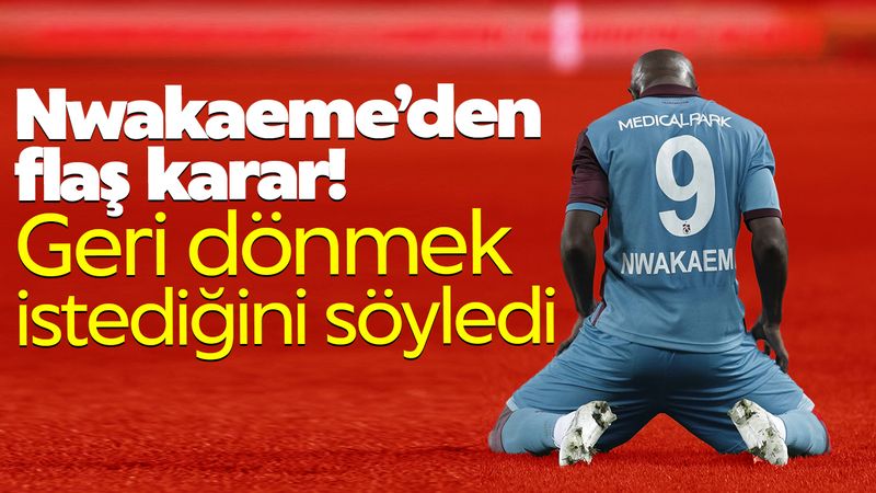 Trabzonspor'dan ayrıldıktan sonra Suudi Arabistan Pro Lig'inde Al Feiha takımına transfer olan Nwakaeme haber gönderdi.Haldun Domaç'ın aktardığı habere göre; Nwakaeme'nin menajerinin oyuncunun Fırtına'ya geri dönmek istediğini ve şuan ki takımında mutsuz olduğunu ifade edildi. Nwakaeme'nin şartlara göre geri dönmek için 'hazırım' dediği kaydedilirken 33 yaşındaki forvetin formayı özlediğini belirtildi.