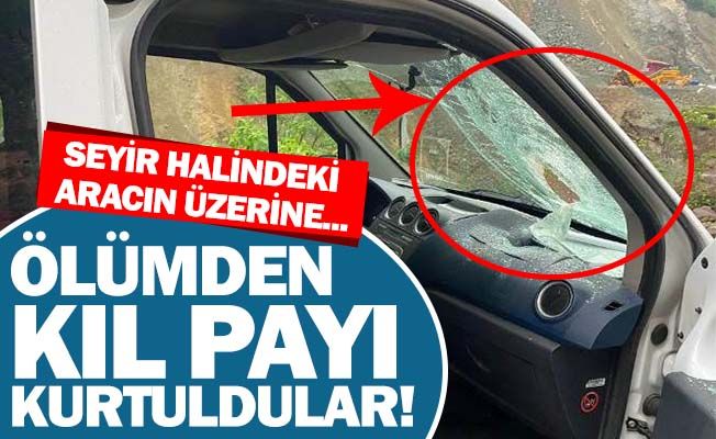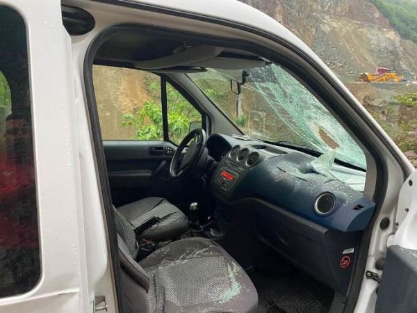 Trabzon’un Yomra ilçesi, Özdil Oymalı Grup yolunda seyir halindeki bir aracın üzerine kaya parçası düştü. Kaya parçası aracın ön camını parçalayarak içeri girdi. Taş ocağının bulunduğu mevkide gerçekleşen olayda aracın içinde bulunan iki kişi ölümden döndü. Olay sırasında araçta bulunan Cemil Aydın “Ölümün eşiğinden döndük” dedi. Aydın “İşten çıktık eve giderken taş ocağının olduğu bölgeye geldiğimiz esnada yukarıdan gelen kaya parçası aracın üzerine düştü. Aracın ön camından giren büyük taş tam ikimizin arasından geçip arkaya gitti. Ölümün eşiğinden döndük. Gün içerisinde taş ocağında patlatma yapıldığını öğrendik. Patlatma esnasında yolu kesiyorlar ancak sonrası için herhangi bir önlem alınmıyor.” Diyerek olaya tepki gösterdi.