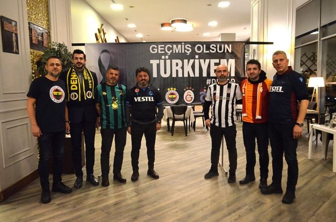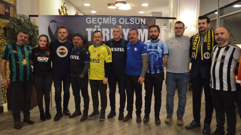 Denizli’de faaliyet gösteren Karadenizliler Derneği oldukça önemli bir organizasyona daha ev sahipliği yaptı. Bugüne kadar üstlendiği misyon ve faaliyetleri ile dikkatleri çeken Karadenizliler Derneği Başkan Birol Konak öncülüğünde yine alkışlanacak bir harekete daha imza attı. Trabzonspor, Beşiktaş, Fenerbahçe ve Galatasaray taraftar derneklerinin Denizli başkanları ve yöneticileri Karadenizliler Derneği öncülüğünde North Point Otel’de bir araya geldi. Avrupa UEFA Konferans Ligi Play Off Turu ilk maçında Trabzonspor’un Basel ile Akyazı Stadı’nda oynanan ilk maçını hep birlikte izleyen taraftarlar adeta kenetlenerek bordo-mavili takıma destek verdi. Organizasyonda bir konuşma yapan Karadenizliler Dernek Başkanı Birol Konak, Trabzon’dan sonra belki de tek organizasyonu kendilerinin yaptığını söyledi. Konak, depremden dolayı yaşadıkları derin üzüntüyü dile getirerek böyle acıların bir daha yaşanmamasını temenni ederken, “Vefa eden vatandaşlarımıza Allah’tan rahmet, yaralılara acil şifalar diliyoruz. Çok zor bir dönem geçiriyoruz. Bu felakette iradesini ortaya koyan, talimat aladan hareket eden herkese teşekkür ediyoruz. Milletimiz ve devletimiz adına onlar için her şeyi yapıyoruz. Belli makam ve mevkilerde olan kişilerin sorumluluğunu iyi bilmesi lazımdır.” Dedi.