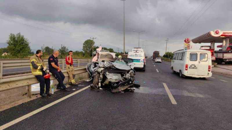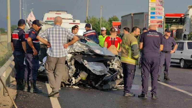 Kaza saat 05.30 sıralarında Bursa-Ankara karayolu üzeri İnegöl’ün Kulaca mahallesi mevkiinde meydana geldi. Bozüyük’ten İnegöl istikametine seyir halinde olan sürücü Abbas Şaşmaz(45) yönetimindeki 34 GOA 719 plakalı otomobil, önünde seyreden Arif Ş.(45) yönetimindeki 31 P 0498 plakalı TIR’a arkadan çarpıp savruldu. Kaza sonucu otomobildeki yolcu Gülsenem Eyüp(78) hayatını kaybederken, otomobilin sürücüsü ile araçtaki yolcular Aysimagül Eyüp(48) ve Ali Diricanlı(42) yaralandılar.Kaza yerine 112, Jandarma ve İtfaiye arama kurtarma ekipleri sevk edildi.3 yaralı da olay yerine sevk edilen Ambulanslarla İnegöl Devlet Hastanesine kaldırıldılar. Yaralılardan Aysimagül Eyüp’ün sağlık durumunun ciddiyetini koruduğu öğrenildi. Feci kaza bir işyerinin güvenlik kamerasına saniye saniye yansıdı.İtfaiye ekiplerince çıkarılan ölen kadının cenazesi savcılık incelemesinin ardından hastane morguna kaldırıldı. Tır sürüsücü jandarma ekiplerince gözaltına alındı.Jandarma komutanlığı ekipleri kazayla ilgil soruşturma başlattı.