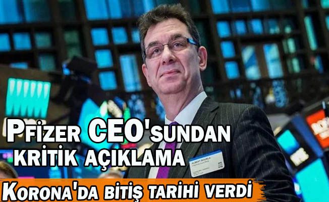 Virüse karşı aşı geliştiren ABD merkezli Pfizer'ın CEO'su Albert Bourla salgının biteceği tarihi açıkladı. Bourla aşılar ile ilgili de çok tartışılacak ifadeler kullandı Bourla şu ifadeleri kullandı: “Gezegenimiz tabiri caizse iki yıldır koronavirüsün (Kovid-19) pençesinde... Dünya genelinde 5 milyona yakın insanın hayatına mal olan virüs eski normallerimizi geride bırakmamıza neden oldu. Virüse karşı pek çok aşı geliştirildi. Bilim insanları ilaç için de pek çok çalışma yürütüyor. Dünya genelinde 5 milyar dozun üzerinde aşı yapılırken bu durum sayesinde tünelin ucundaki ışığı görmeye başladık.” Pfizer, BioNTech ile birlikte geliştirdiği aşıdaki mRNA teknolojisi ile dikkatleri üzerine çekmişti. Pfizer CEO'su Albert Bourla, aşılar ve pandeminin ne zaman biteceğine ilişkin ise, ABD'nin bir yıl içinde normale döneceğini düşündüğünü söyledi. CEO, Koronavirüs aşılarının ise hayatımızdan çıkmayacağını iddia etti. Bourla'ya göre, insanlar pandemi sona erdikten sonra da güçlendirici aşıları olmaya devam edecek. CEO, insanların o yıl grip virüsünün en olası varyantına karşı korunmak için her yıl grip aşısı olmalarına benzer şekilde, insanların her yıl koronavirüs güçlendirici aşıları almaya devam etmeleri gerekeceğini söyledi.