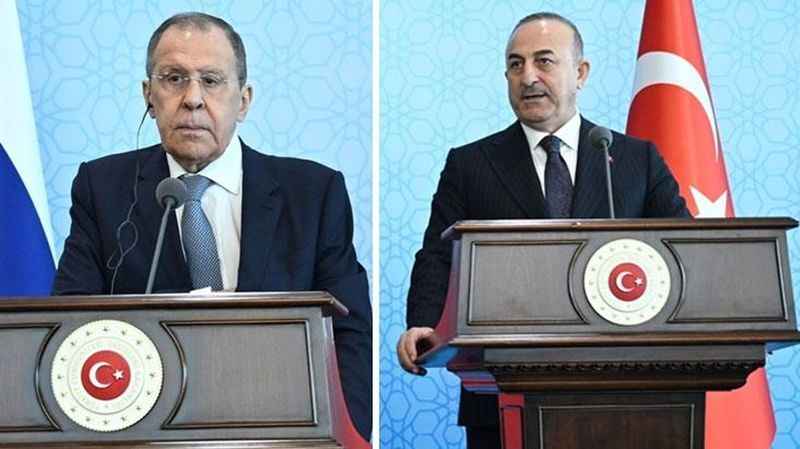 Rusya Dışişleri Bakanı Sergey Lavrov, Türkiye'ye yaptığı iki günlük ziyaretin ikinci gününde Dışişleri Bakanı Mevlüt Çavuşoğlu ile bir araya geldi. İki bakan, heyetler arası görüşmelerin ardından Cumhurbaşkanlığı'nda ortak bir basın toplantısı düzenledi.