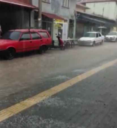 Saat 18.45’te başlayan şiddetli yağmur ve dolu sele neden oldu. İlçede 15 dakika süren yağış nedeniyle bazı cadde ile sokaklarda su birikintileri oluştu, yayalar ve sürücüler zor anlar yaşadı. Yağmura hazırlıksız yakalanan ilçe sakinleri, sağanak yağış ve misket büyüklüğünde doludan dolayı saklanacak yer aradı.