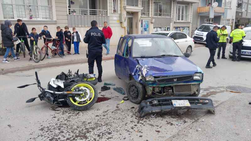 Samsun’un Bafra ilçesinde otomobille motosikletin çarpıştığı kazada 1 kişi yaralandı.Yusuf Taşkın (39) kullandığı 10 EU 680 plakalı otomobil, İsmet Paşa Mahallesi, İsmet Paşa Caddesi’nde Mert Çakın (22) yönetimindeki 55 AJR 570 plakalı motosikletle çarpıştı.İhbar üzerine kaza yerine polis ve 112 Acil Servis ekipleri sevk edildi.Yaralı motosiklet sürücüsü 112 Acil Servis ekibince Bafra Devlet Hastanesi’ne kaldırıldı.Öte yandan otomobilin muayenesi ve trafik sigortası bulunmaması nedeniyle sahibine idari para cezası kesildiği, aracın yediemin otoparkına çekildiği öğrenildi.