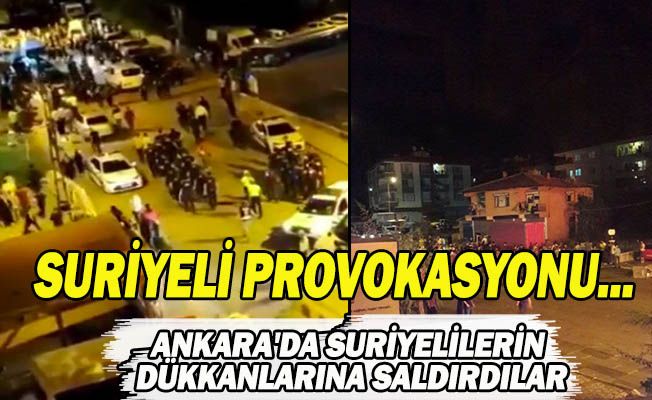 Ankara'nın Altındağ ilçesinde, yabancı uyruklu kişilerin saldırısına uğrayan Emirhan Yalçın'ın hayatını kaybetmesi sonucu bir grup vatandaş, Suriyelilerin dükkanlarına saldırdı. Ankara'nın Altındağ ilçesindeki olaylar büyümeye devam ediyor. Dün akşam saatlerinde yabancı uyruklu grup ile çıkan bıçaklı kavgada yaralanan 18 yaşındaki Emirhan Yalçın, hayatını kaybetmişti.Gerilimin yükselmesiyle sokağa dökülen bir grup vatandaş, Suriyelilerin dükkanlarına saldırdı.OLAY ANI KAMERALARA YANSIDISaldırı anı cep telefonu kameralarına yansıdı. Görüntülerde, bir grup kalabalığın dükkanlara ve evlere taş atarken bir kısmı da Suriyelilerin araçlarını ters çevirdiği görülüyor.Kalabalık grup tüm uyarılara rağmen dağılmazken, çevik kuvvet ekipleri dükkanların önünde barikat kurdu.Yaklaşık 50 bin nüfuslu Battalgazi Mahallesi'nde en az 10 bin Suriyeli olduğu tahmin ediliyor.VALİLİK AÇIKLAMA YAPTIAnkara Valiliğinin sosyal medya üzerinden paylaştığı yazılı mesajda ''Altındağ ilçemizde bu akşam meydana gelen birtakım gösteri ve olaylar, vatandaşlarımızın soğukkanlılığı ve emniyet güçlerimizin yoğun çalışmaları sonucu an itibariyle sona ermiştir. Halkımızın provakatif haber ve paylaşımlara itibar etmemeleri önemle rica olunur.'' ifadelerine yer verildi.