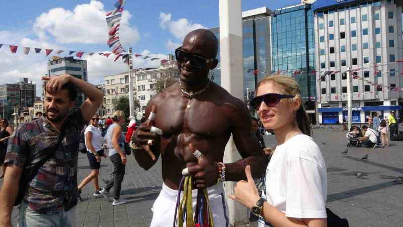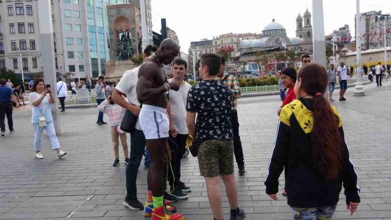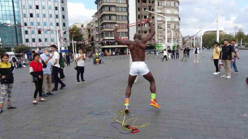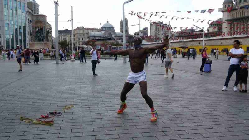 Amerika Birleşik Devletleri’nden dünyayı dolaşmaya çıkan sosyal medya fenomeni Takk Method, Taksim’de jimnastik gösterisi yaptı. Yerli ve yabancı turistlerin fotoğraf çektirmek için sıraya girdiği fenomen, İstiklal Caddesi’nde bazılarıyla jimnastik gösterisi de yaptı. Vatandaşlar sosyal medya fenomenini hayretle izledi. Fenomen jimnastikçi gösterinin ardından alkış yağmuruna tutuldu.