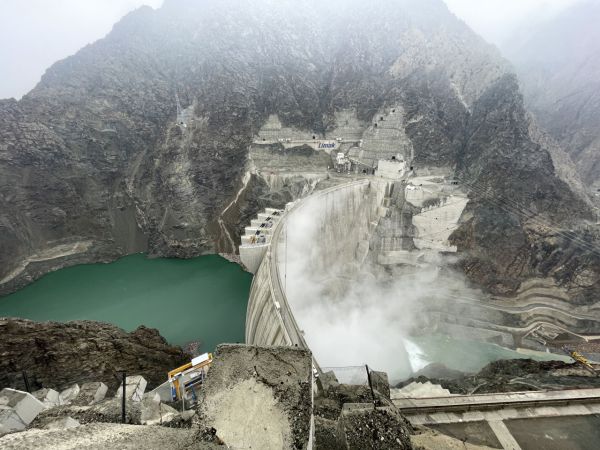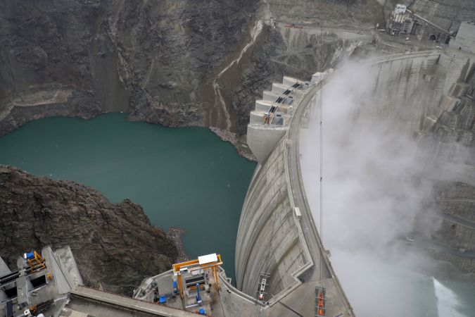 Tarım ve Orman Bakanı Vahit Kirişci (ortada), Artvin'in Yusufeli ilçesindeki Yusufeli Barajı ve HES'te incelemelerde bulundu.